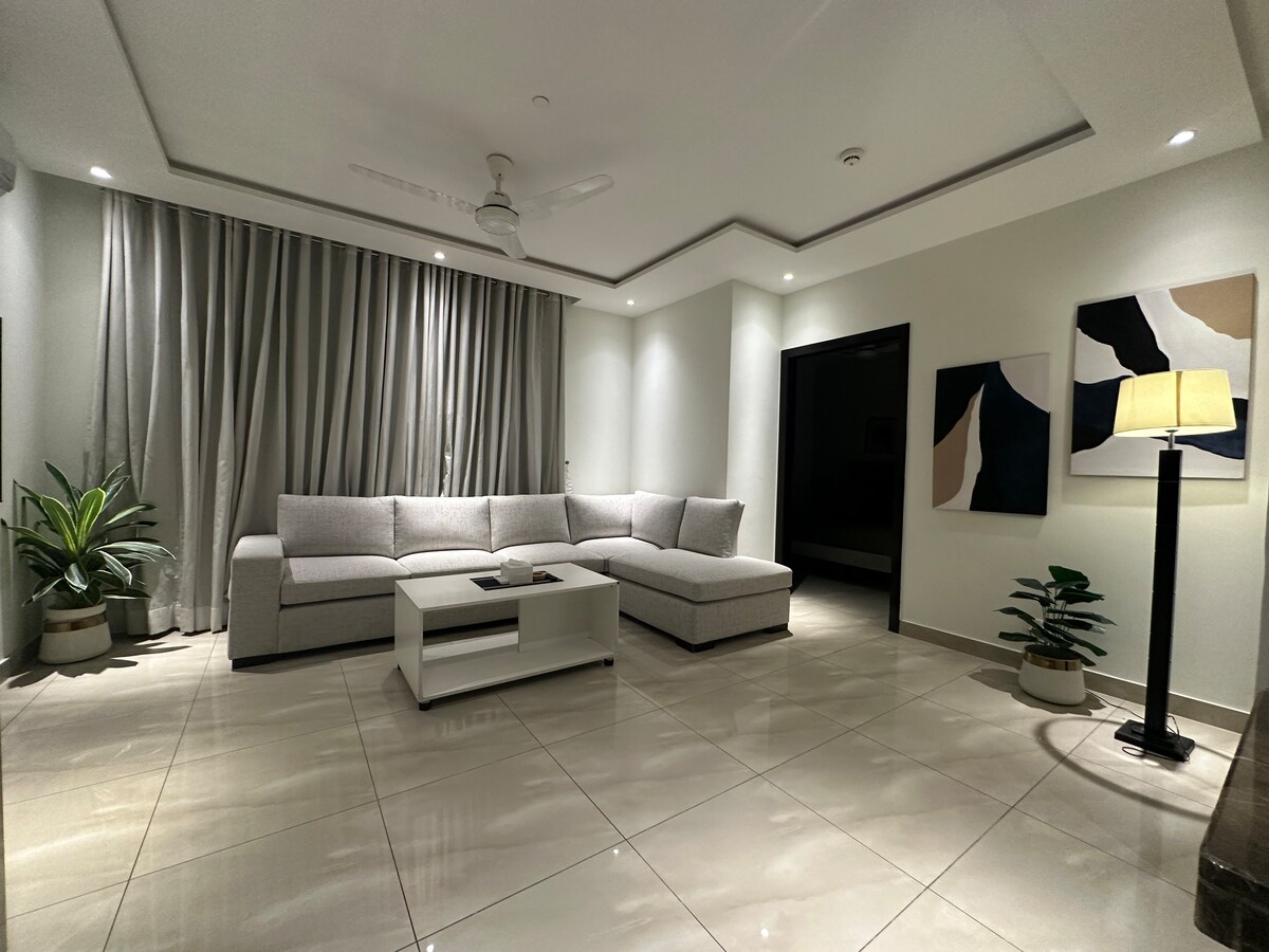 Elegantna garsonjera sa samostalnom prijavom u blizini ulice MM Alam u srcu Gulberga. Ovaj miran i siguran prostor idealan je za samostalne putnike, poslovne posjetioce, parove i male porodice. Uživajte u brzom Wi-Fi mreži, pametnom TV-u, rezervnom napajanju, besplatnom parkingu, grejanju i jednostavnom samostalnom dolasku. Dizajniran za udobnost i privatnost, to je opuštajući smještaj nakon napornog dana. Okružen kafićima, restoranima, trgovinama i glavnim gradskim rutama, savršen je za kratke ili duže boravke.