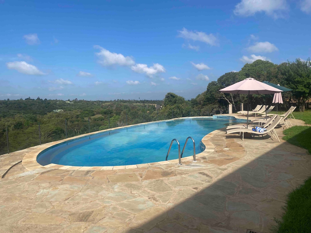 OSOTUA Home VILLA is a Newly Built Home with 7 Rooms in Nanyuki. Has two floors, seven bedrooms for upto 16 guests, swimming pool, trampoline, elevator, tabletennis, football table, PS in living room, and jacuzzi on rooftop. Cooking facilities. Restaurant. It has a 15m by 3m terrace for families and a spacious rooftop for social activities for both family and corporate events. It has a 360 degrees view of MtKenya, Daiga and Aberdare hills. Whole villa is over 700 sq meters. Breathtaking.