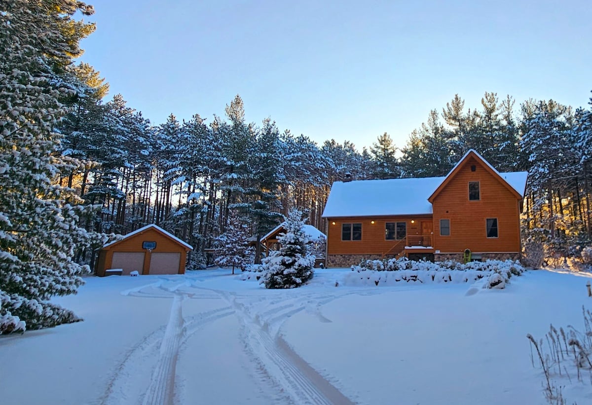 Isključite se, opustite se i povežite sa prirodom u ovoj prelepoj brvnari koja se nalazi u centralnom Viskonsinu. Sa mnoštvom aktivnosti u sklopu objekta i u blizini, sigurno ćete pronaći nešto u čemu će svi uživati. Provedite dan istražujući OGROMNO dvorište s privatnim jezercem bez ribe i pješačkim stazama na 20 hektara. Zatim se udobno smestite u kaminu od prirodnog kamena noću. 7 terena za golf u roku od 15 minuta, uključujući Sand Valley. 5 minuta do jezera Petenvel. 15 minuta do ATV parka Dyracuse.