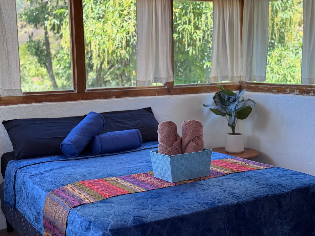 Naša brvnara je savršeno utočište uz jezero sa kojeg možete da otkrijete jezero Atitlan. Nudimo pogled na vulkan koji oduzima dah, baštu i pristup besplatnim kajacima za istraživanje jezera. To je idealno utočište za opuštanje, odvajanje i uživanje u prirodi na jednoj od najljepših destinacija u Gvatemali. Imamo baštu sa visećim ležaljkama i tropskim biljkama u kojoj možete uživati tokom boravka, potpuno opremljenu kuhinju i udobne sobe za odmor.