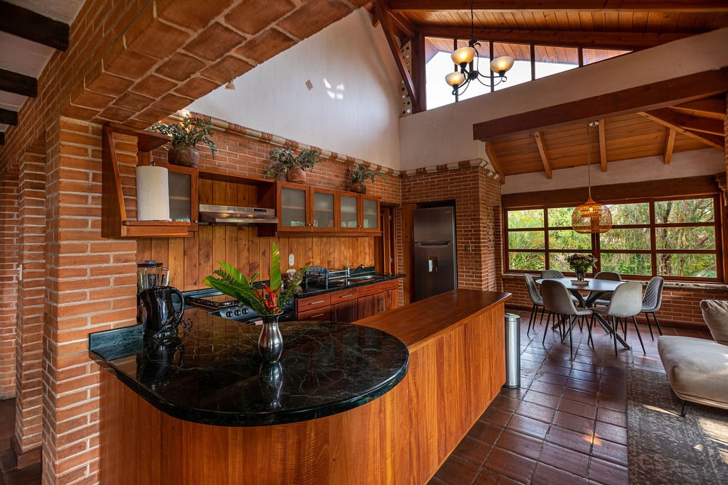 Jedinstveno dizajniran prostor ima svijetao i prozračan tlocrt, sa 2 ugrađena bračna kreveta (plus jedan krevet za jednu osobu), kaminom, dnevnim boravkom koji služi i kao dodatni prostor za spavanje (najbolji za djecu), potpuno opremljenom kuhinjom, kupatilom sa kadom za kupanje za dvije osobe, trpezarijom i unutrašnjim dvorištem dugim 10 metara sa dnevnim krevetom, visećom ležaljkom i prostorom za sjedenje. Naravno, sve sobe imaju spektakularan pogled na jezero i veličanstvene vulkane po kojima je poznato jezero Atitlan.