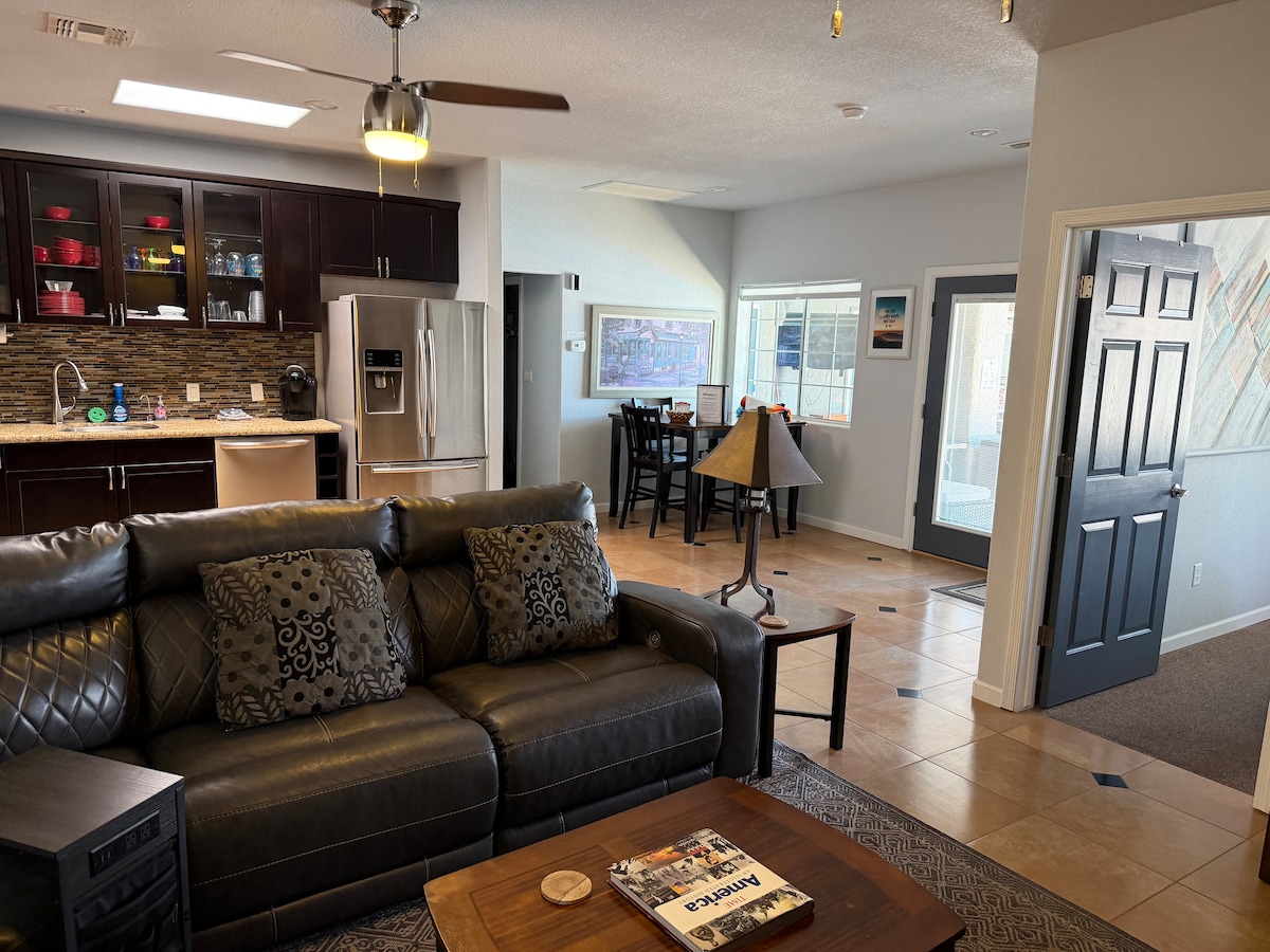 780 kvadratnih metara privatnog unutrašnjeg prostora; mesto koje možete da nazovete domom u Havasu. Savršeno za romantični odmor ili mirno opuštanje! Udoban bračni krevet u spavaćoj sobi, krevet pune veličine u dnevnoj sobi, kuhinja, trpezarija, TV sa ravnim ekranom, brzi WI-FI, klima uređaj, popločana tuš-kada. Zajedničko spoljašnje dvorište/bazen/hidromasažna kada i zelenilo. -Sparkling GRIJANI bazen i hidromasažna kada -Mini stavlja zeleno za zabavu i smeh. Imamo klubove i loptice za golf. -Mnogi udobni vanjski prostori za sjedenje.