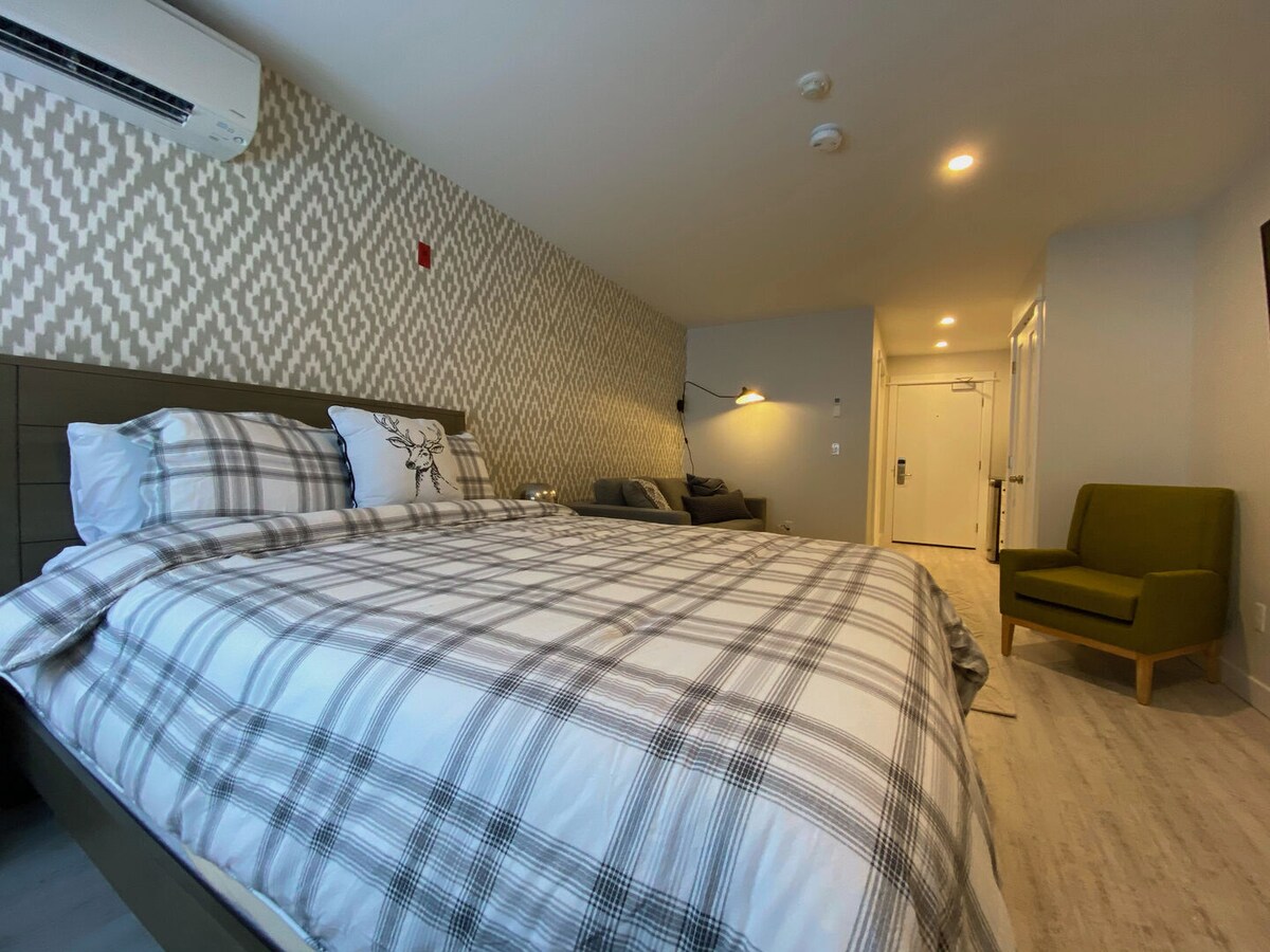 Odsjednite kod nas ako želite da budete u centru centra Kasteltona. Prodavnice, restorani, koledž i pješačka/biciklistička staza su lagana šetnja. Ovo je vrlo pogodna lokacija. Udaljeni smo i 30-40 minuta vožnje do skijališta Piko i Kilington. Pet minuta do jezera Bomoseen. Nedavno ažurirano, grijanje i klima-uređaj, kupatilo, Wi-Fi, Qled TV, udoban bračni krevet od memorijske pjene, kompletna čajna kuhinja. Rezervisani parking pored ulaza. Sve što vam treba za noćenje ili duži boravak