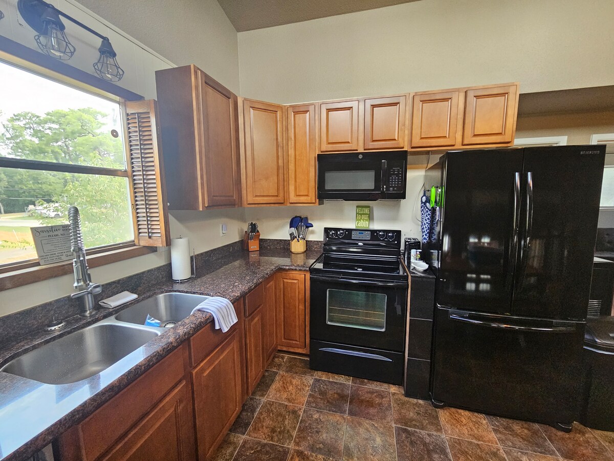 Uživajte u jedinstvenoj teksaškoj brvnari od 1700 kvadratnih metara u šumi! Ovaj dom na 1,5 spratu, koji se nalazi na maloj porodičnoj farmi, ima tri spavaće sobe i dva kupatila sa otvorenim dnevnim boravkom, trpezarijom i kuhinjom. Tostiranje tosta ispod zvijezda, roštiljanje na ognjištu, igranje potkova ili kukuruzne rupe, vođenje sopstvene joge sa našim kozama, sakupljanje jaja od kokoši, opuštanje u visećoj ležaljci, igranje teterbol, šetnja kroz šumu ili plesanje u klasičnoj teksaškoj zemlji na gramofonu.