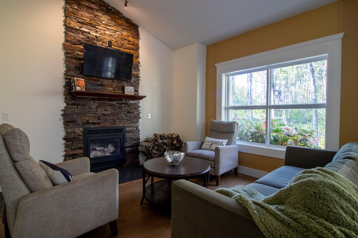 Opustite se u ovom kanadskom utočištu sa kaminom na plin i saunom na drva. Savršeno za samostalne bijegove, avanture u dvoje i radne odmore; ovo udobno skrovište spaja nostalgičnu udobnost sa okrepljujućim šarmom. Uživajte u pogledu na prirodu, muzici na vinilu i prostorima pogodnim za rad; stvarajući vrhunski miran odmor za opuštanje, razmišljanje ili fokusiranje. Uživajte u prirodi i divljim životinjama, uključujući domaćinove mačke koje se mogu šetati po imanju. Provozajte se 15 minuta na sjever do šarmantnog grada Barheda