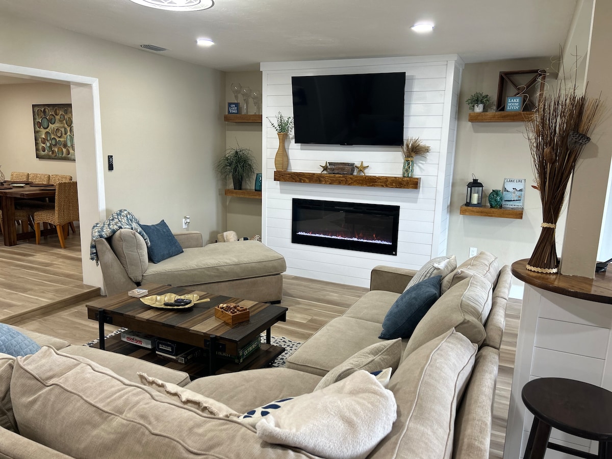 Rezervišite što prije i uživajte u suncu, zabavi na jezeru i privatnoj plaži! Thrive4life je sretno mjesto naše porodice i želimo da ga vi učinite svojim! Izujte se i kopajte na nogama na našoj privatnoj plaži. Pogled na vodu je zvijezda predstave. Smješteno na prelijepom jezeru Džun, ovo prelijepo uređeno utočište pruža najbolje što nudi jezero Džun. Plaža sa ognjištem je savršeno mesto da upijete sunce tokom dana ili da uživate u večernjem piću ili smori pored vatre dok sunce zalazi.