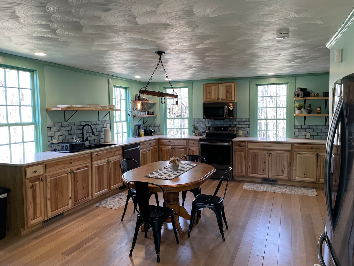 Uživajte u mirnom jutru u trosezonskoj sobi ili na terasi gledajući ćelave orlove kako se uzdižu ili čaplje visoke 5 stopa i love doručka u reci. Riverwood nudi spokoj u zemlji i zadivljujući pogled na prirodu. Sa privatnim pristupom reci za vožnju kajakom, ribolov, posmatranje ptica ili planinarenje, ovo je savršeno mesto za okupljanje i punjenje vaše grupe. Nalazi se 10 minuta od Pa Rt 79 i I-80, a ipak van utabane staze u srcu zemlje Amiša. Nekoliko minuta od lokalnih štandova na farmi, vinarija i pivara