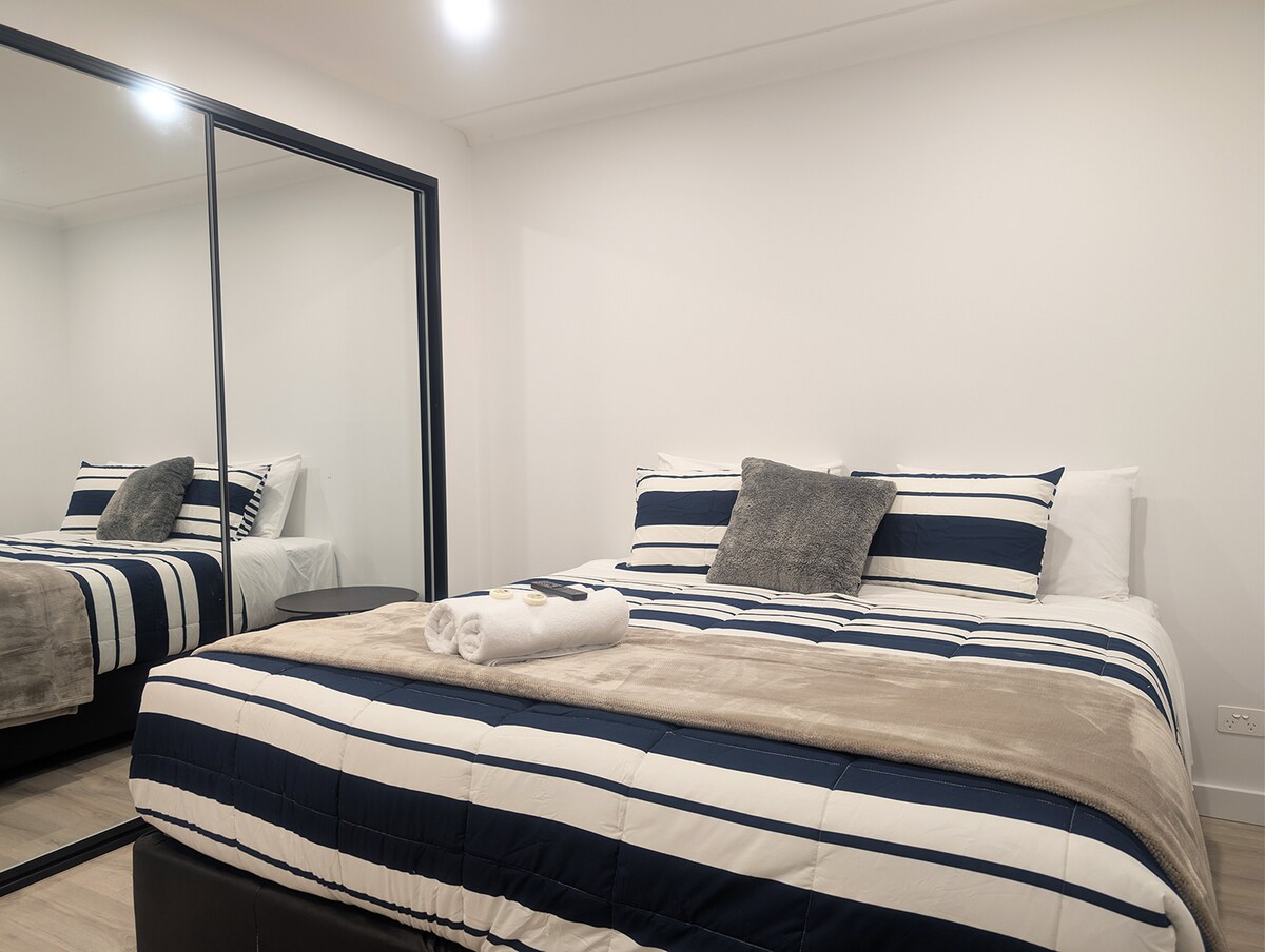 If you've been looking for a beach getaway in a perfect location this self-contained one bedroom unit ticks all the boxes! The unit is self-contained on the ground level of our house, with a private courtyard and entry. With a bedroom (queen bed), kitchenette and dining/living area, the space is perfect for a couple. It is brand new and well-equipped, with Smeg appliances, Nespresso machine, heated floors and towel racks, fully-equipped laundry, ducted air, ceiling fans, and more.