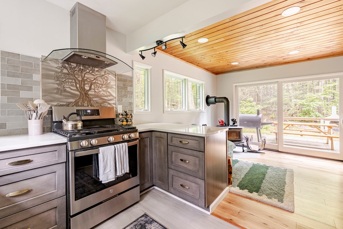 Moderni Woodland Getaway sa hidromasažnom kadom i ognjištem