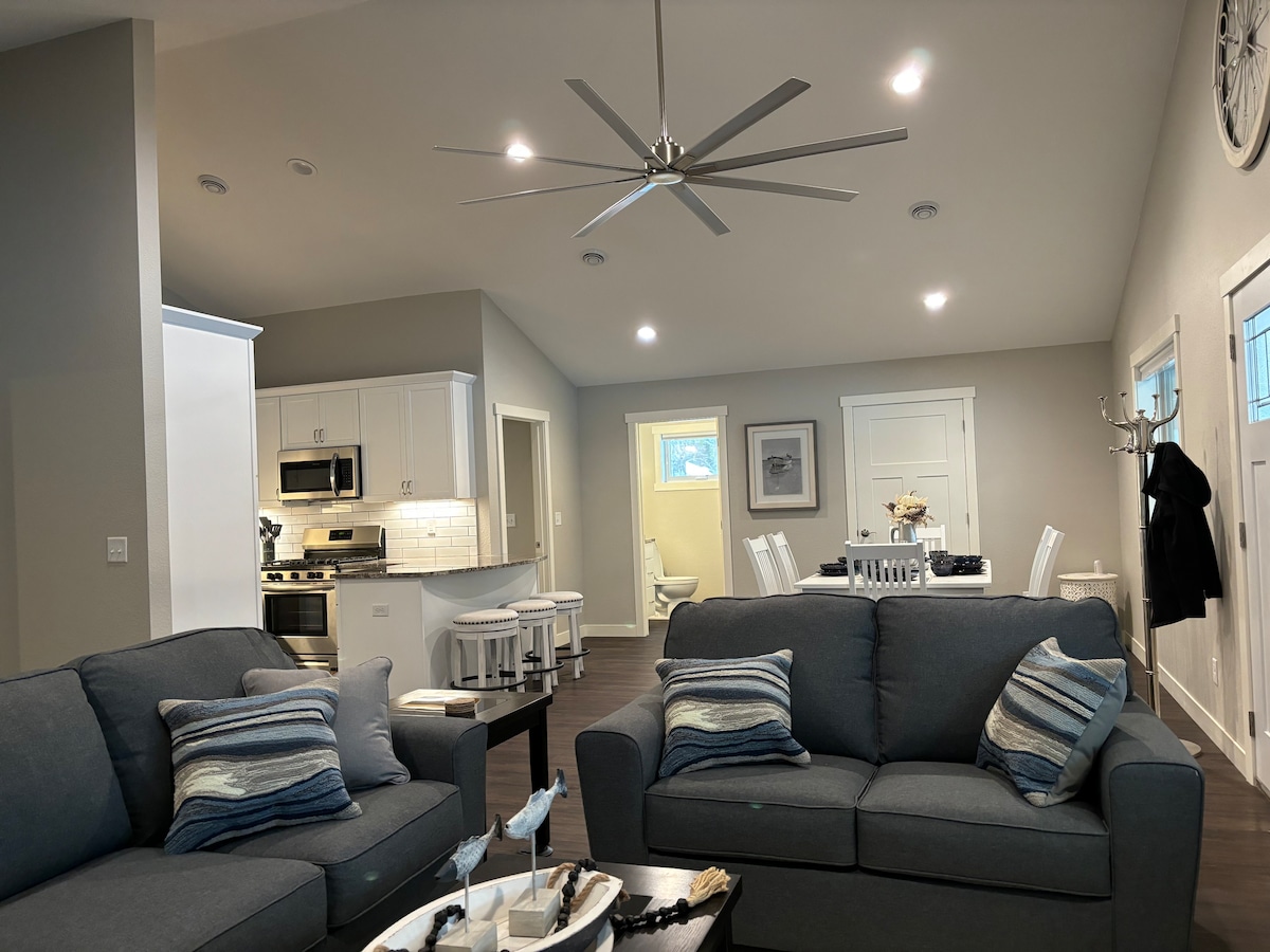This charming one-bedroom cottage sits peacefully by the tree line, inviting you to start your mornings with coffee on the private porch. Spend afternoons exploring snowshoeing, hiking, fishing, or canoeing in Brule River State Forest. In the evenings, unwind with movies in your cozy retreat. For larger groups, consider renting The Farmhouse at Brule River Barn, a spacious four-bedroom, two-bath home sleeping 11.