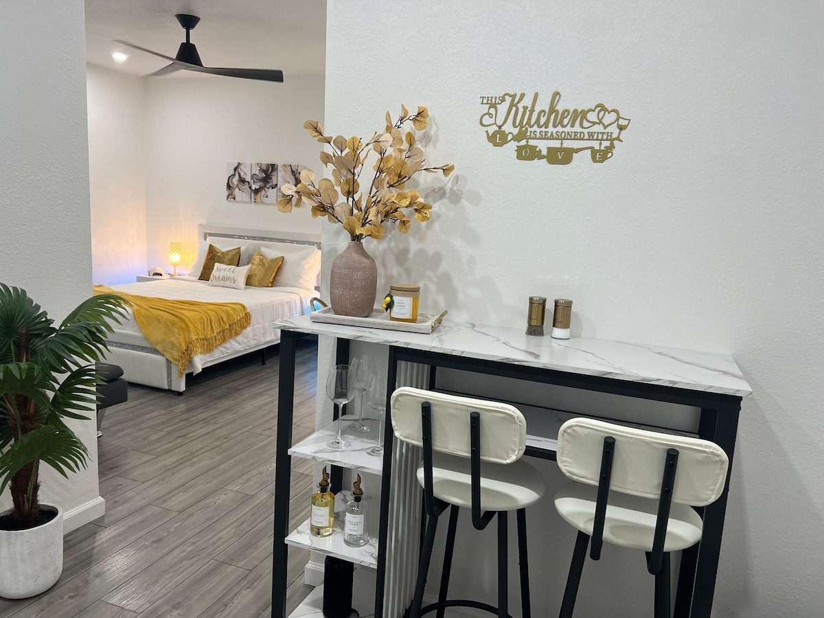 Dobro došli u naš prelijepi i romantični PRIVATNI apartman u Orlandu , sa bračnim krevetom, sofom, radnim prostorom, modernim kupatilom, potpuno opremljenom kuhinjom sa svime što vam je potrebno za boravak! Idealan prostor za opuštanje na odmoru kao par! *Studio je povezan sa glavnom kućom, ali ima sopstveni privatni ulaz samo za upotrebu. Ne dijeli se ni sa kim drugim. Na privatnom ulazu ćete pronaći prostor za opuštanje i uživanje!
