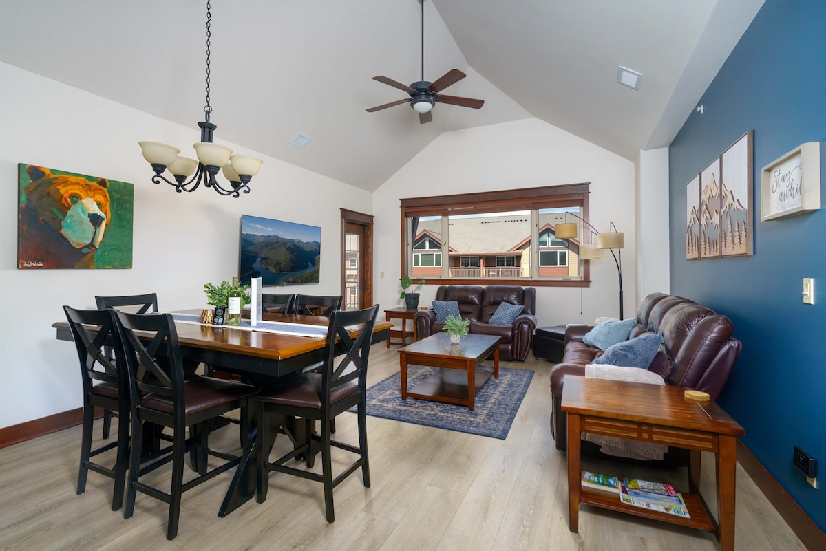 Avantura danju. Spa-odmor noću. Prošetajte do Srebrne planine iz ovog penthausa sa 2 spavaće sobe i 2 kupatila na najvišem spratu. Može da primi 7 osoba, sa potpuno opremljenom kuhinjom i mašinom za pranje i sušenje veša u smještaju. Granitne radne površine. Skijajte, vozite bicikl duž reke Hajavata, igrajte golf ili istražujte reku Ker d’Alen – a zatim se opustite u zajedničkoj hidromasažnoj kadi, sauni i parnoj kupelji. U blizini gondole, vodenog parka, restorana i cjelogodišnjih avantura. Čisto, tiho i savršeno za porodice ili prijatelje.
