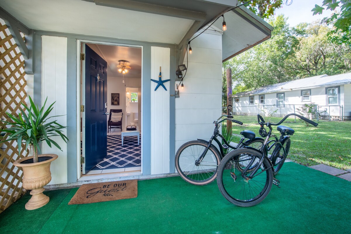 Tražite li opuštajući vikend? Ovo mjesto ima sve! Ušuškana ispod veličanstvenih živih hrastova na obali prirode, ova mala staja je opuštajuća. Probudite se ujutro i otvorite vrata dvorišta kako biste čuli kako ptice pjevaju i posmatrajte izlazak sunca dok uživate u toploj kafi u adirondack stolici. Uživajte u večerima uz lomaču i kuvajte u našoj čajnoj kuhinji na otvorenom. Naše potpuno ograđeno dvorište omogućava vašem čupavom prijatelju da slobodno luta dok se vi opuštate!