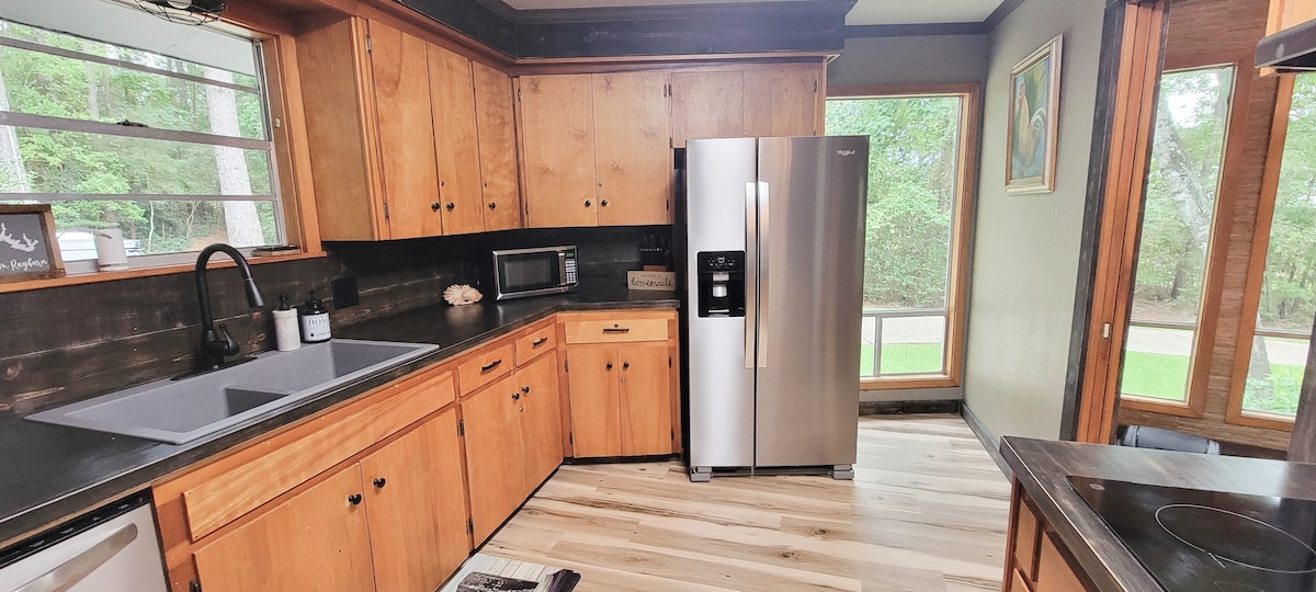 Opustite se među borovima i mirnim vodama Sema Rejbarna. Uživajte u porodičnoj zabavi u prostranom dvorištu koje uključuje predimenzioniranu ognjište, savršeno za prijatne noći! Ova kuća ima sve pogodnosti koje su vam potrebne, uključujući prostor za parkiranje broda. Savršeno za vikend sa porodicama ili romantičnim parovima. Nalazi se samo pola milje od marine. Uključena je propusnica za lansiranje broda. Ribolovni izleti sa vodičem dostupni su uz poznatog vodiča uz dodatnu naknadu.