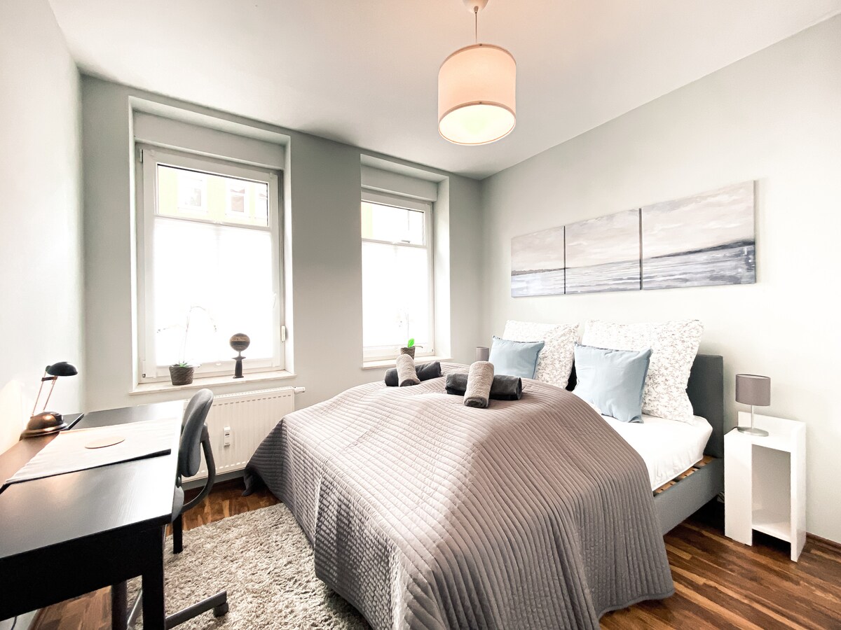 Mali udoban jednosoban stan na mirnoj, ali ipak centralnoj lokaciji u Lajpcigu. Otprilike 2 km od pijačnog trga, stadiona ili arene. Tramvaj i metro su u neposrednoj blizini. Opremljen je kaučem, kuhinjom, mašinom za veš i mašinom za sušenje veša. Pogodno za istraživanje Lajpciga i okoline. Ili kao smeštaj za poslovna putovanja.