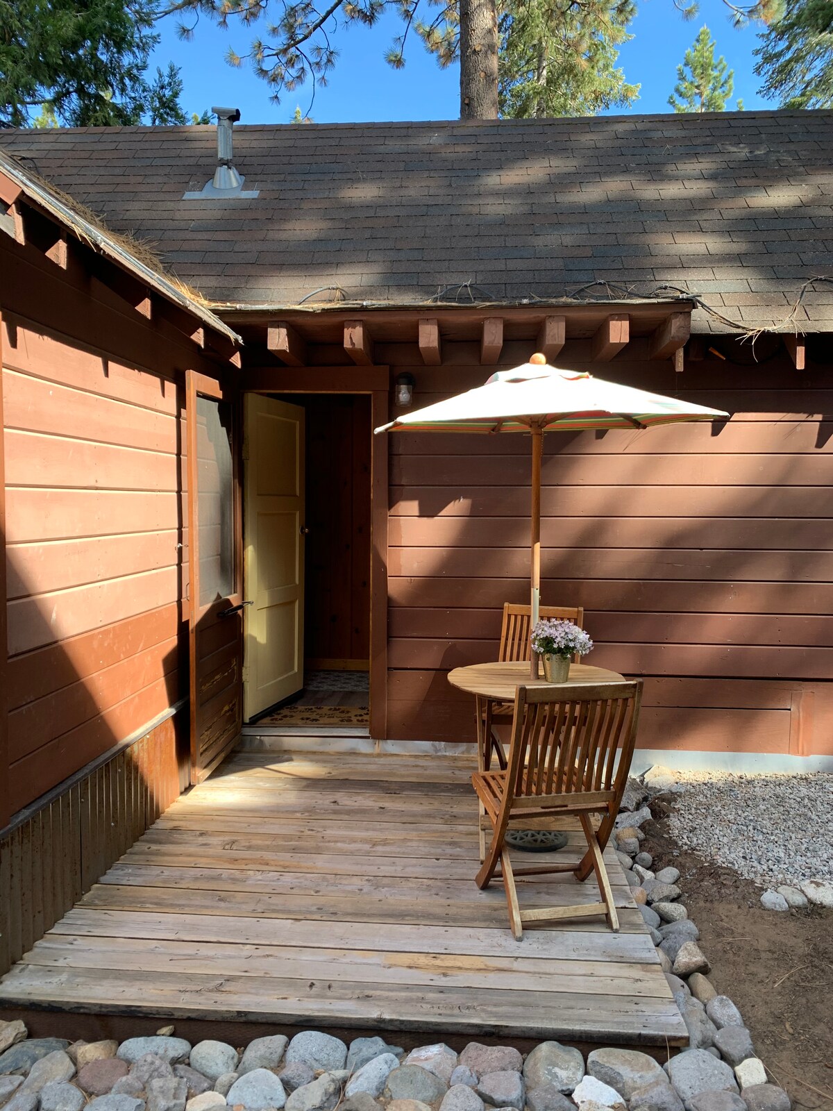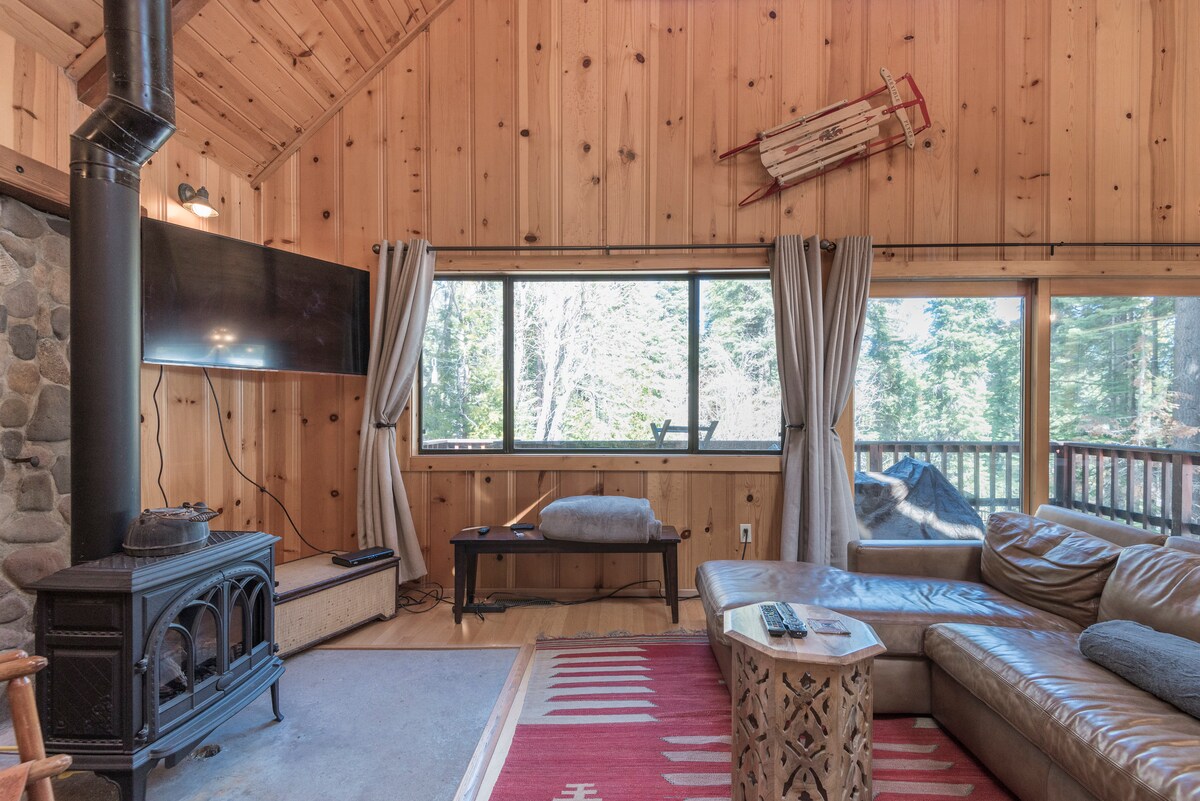 Dobro došli u Triangle Lodge! Moderna brvnara sa kosim krovom iz sredine prošlog veka ušuškana u prelepu i mirnu zajednicu pored jezera Seren Lejks. Samo nekoliko minuta od nekoliko skijališta, uključujući Sugar Bowl, Boreal, Soda Springs i Kraljevsku kanjon. Tokom toplijih meseci idite na planinarenje, planinski biciklizam, veslanje na dasci ili vožnju kajakom. Triangle Lodge je savršeno mesto za opuštanje nakon dana istraživanja ovog neverovatnog područja. Ova udobna brvnara je savršena za porodice i parove (čak i vaše krznene prijatelje!)