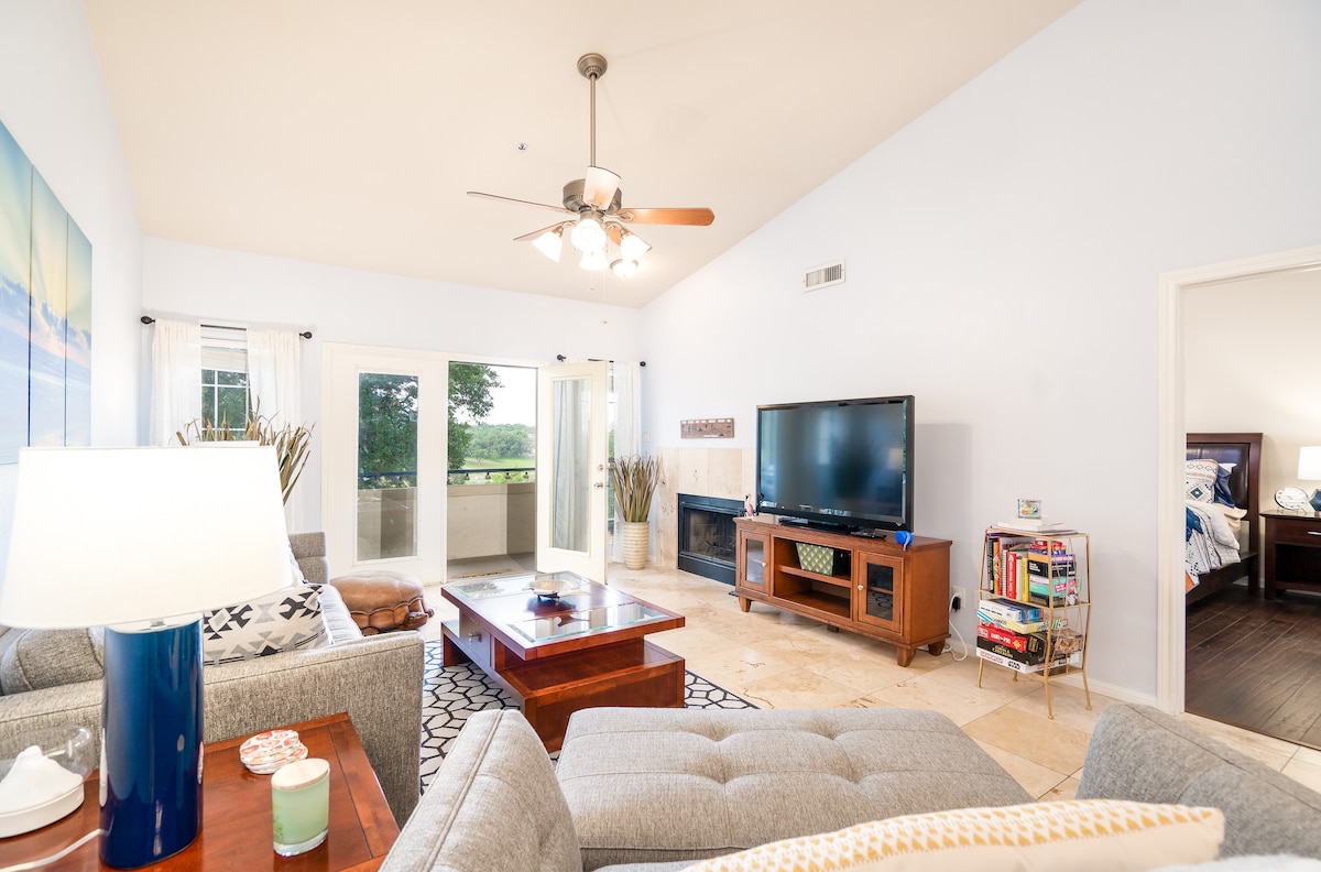 Waterfront top floor villa with deep water views from large patio, living room and bedroom. Daily deer encounters. Watch sunsets on Lake Travis' private island. Stand up shower, jacuzzi tub, washer/dryer, weekend salon/spa, restaurant, 3 pools, hot tubs, saunas, elevator access, fitness center, shuffleboard, WiFi, pickleball and tennis. Max 4 guests, including infants and children. 21+ to book. More villas available for family. Nice people only! 😊