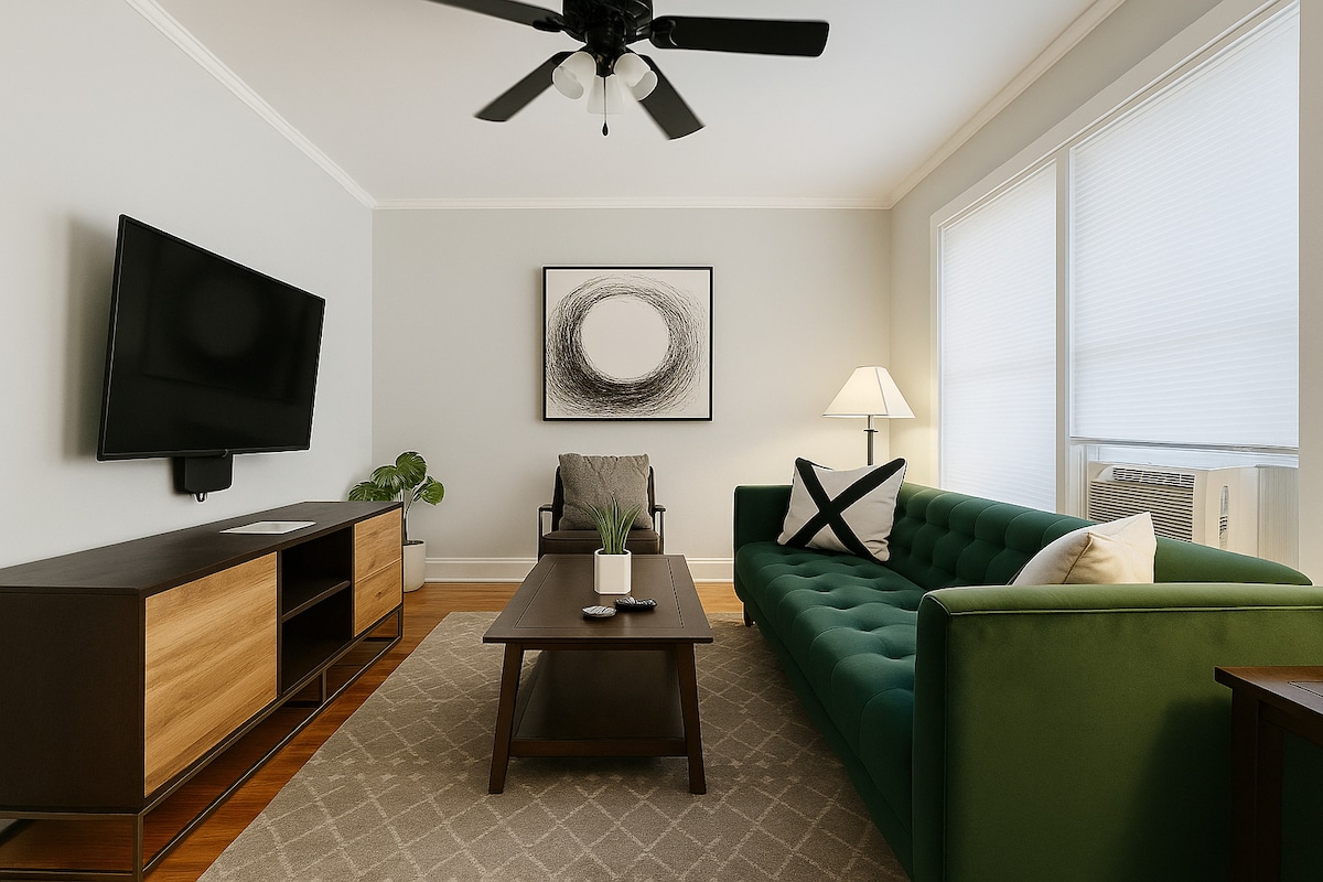 Drugi sprat, jednosoban stan, sa dodatnim kaučem na razvlačenje koji se nalazi u prelijepoj istorijskoj četvrti u Lejkvjuu. Samo nekoliko koraka od ulice Halsted/Bojstaun/Vrigli polja. Praktična lokacija za kupovinu, restorane, metro (EL) i prodavnice. U blizini jezera, staze za trčanje i biciklističke staze. Dostupne su dodatne propusnice za parkiranje na ulici. Stan nema klima-uređaj. Ima prozorsku jedinicu u spavaćoj sobi od aprila do septembra.