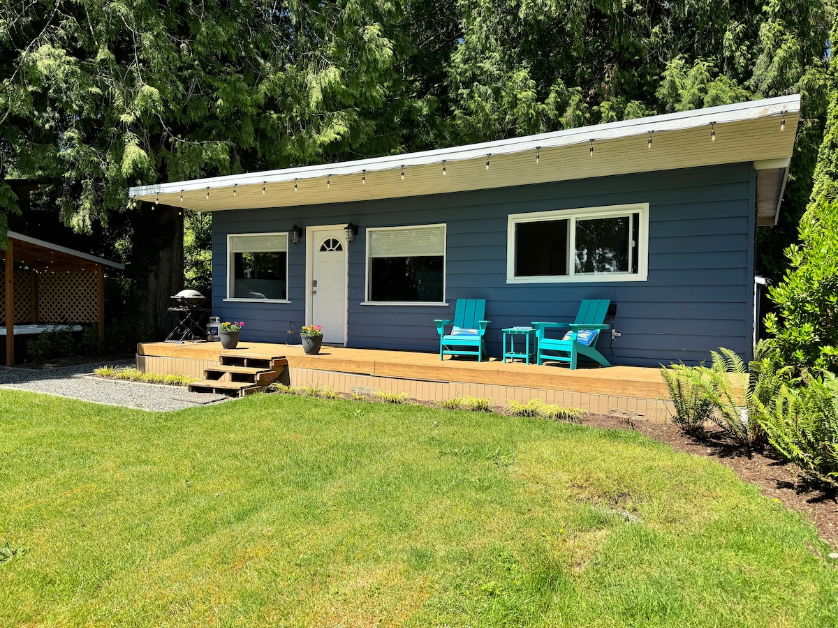 Nedavno renovirana, predivna brvnara na obali rijeke u planinskom lancu Kaskad, odmah pored rijeke Skajkomiš. Uživajte u zadivljujućem pogledu na planinu Opustite se pored ognjišta ili na veličanstvenoj terasi koja okružuje cijeli objekat, gdje možete da se opustite u hidromasažnoj kadi, tuširate se na otvorenom i roštiljate, a u unutrašnjosti uživajte u luksuznom, modernom planinskom prostoru: sauna, bračni krevet (širine 180–220 cm), potkrovlje sa bračnim krevetom (širine 150–179 cm), nova kuhinja i još mnogo toga! 30 sekundi do veličanstvenih vodopada, 2 minuta do odličnih staza za planinarenje, 30 minuta do skijališta Stivens. Kućni ljubimci su dobrodošli uz naknadu. Rezervišite susednu kolibu Three Peak za još više zajedničkih uspomena!
