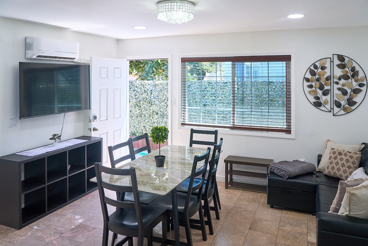 Dobro došli u našu oazu Obispo - klasični kalifornijski bungalov izgrađen 1927. godine koji je prelijepo renoviran u srcu predstojećeg okruga Zaferia u Long Biču, manje od 3,2 km do plaže. Ovaj smještaj je za zadnju kuću dupleksa sa potpuno odvojenim ulazom, odvojenim privatnim dvorištem, sopstvenim parkingom i garažom za 2 automobila kojoj se pristupa kroz uličicu bez zajedničkih zidova. ** *Ako dovodite kućnog ljubimca, obavezno ga uključite u rezervaciju. Naknada za kućne ljubimce iznosi 75 $. ***