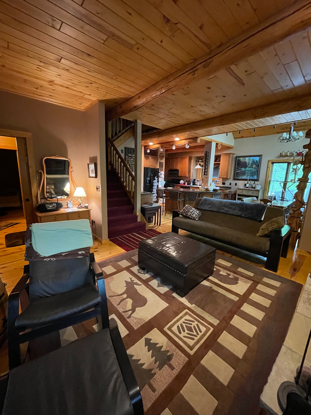 Dobro došli u naše odmaralište u severnoj šumi! Naša trosobna kuća sa dva kupatila nalazi se na samo jednu milju od obližnjeg Lejkvuda u Viskonsinu. Naš dom je dobro opremljen svim sadržajima koji su vam potrebni, uključujući dovoljno parkinga, korišćenje garaže sa dva štandova, celu kuću samo za sebe i ograđeno dvorište za privatnost. Unutra ćete pronaći prostrane sobe, uključujući veliku, dobro opremljenu kuhinju i koncept otvorenog dnevnog boravka/trpezarije, tri prostrane spavaće sobe i dva kupatila.
