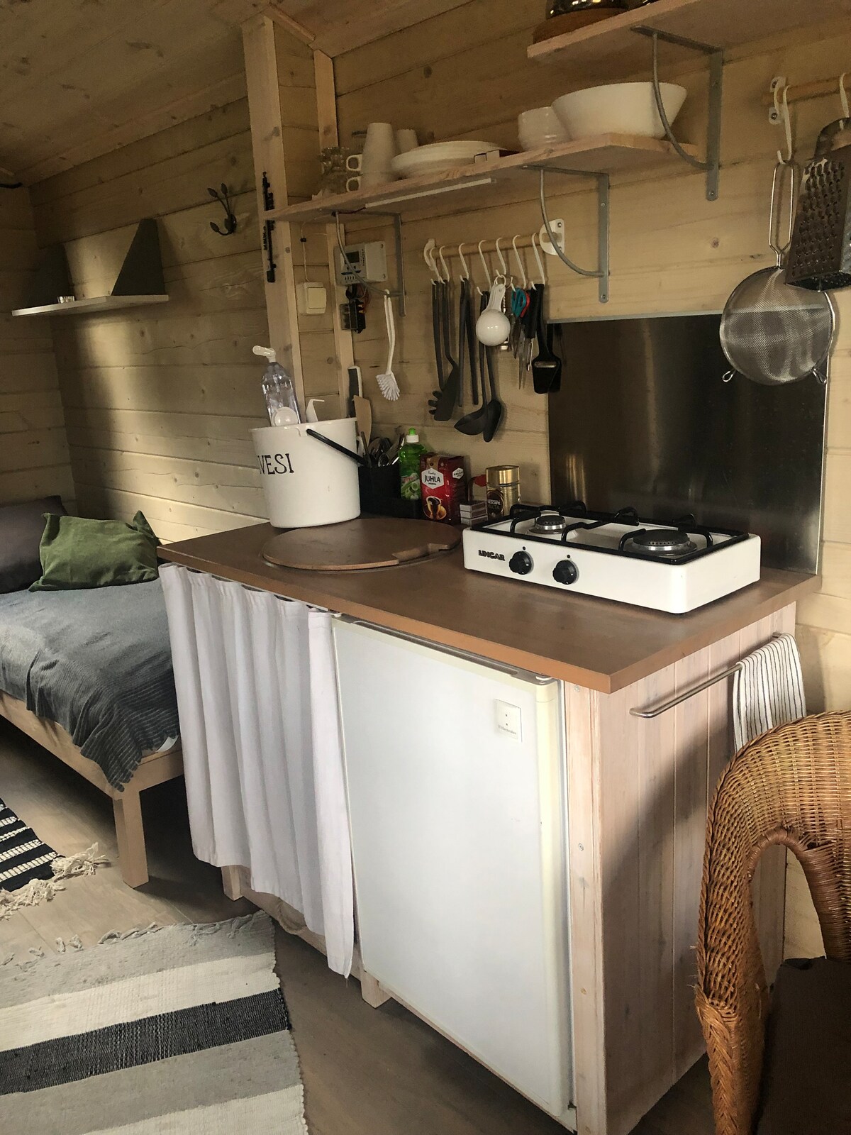 Dodirnite sa pogledom na veoma lepu lokaciju sa jedinstvenom saunom na plaži na raftingu. Mogućnost ribolova u susjednoj rijeci sa posebnom plaćenom dozvolom, 1,5 km od planinarske staze Kevo, U krugu od 5 km od vrlo dobrih jezera za pecanje na ledu, Korišćenje veslačkog broda je moguće na obližnjem jezeru, divljina se takođe može iznajmiti tražeći više. Opcija punjenja električnih automobila, pitajte za detalje. Čišćenje 40 € Javite nam ako vam zatreba.