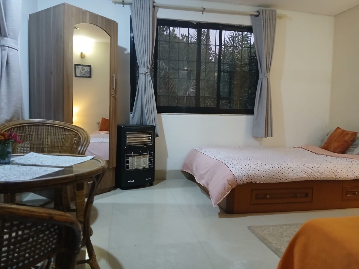This house is recently built in a antique design. We have two room in each floor. On small room with double bed and attach bathroom and one big room with attached bathroom with bath tub, a small pantry for cooking, refrigerator and microwave oven. We have focused for long stay who likes to cook sometimes in the house.