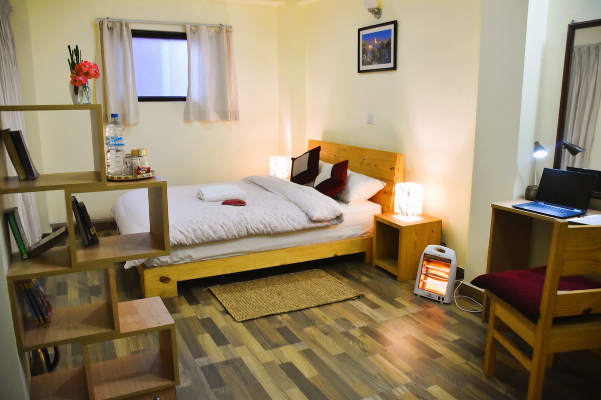 Dobro došli u svoj prostrani dom u Patanu u susednom hostelu. Nalazimo se u blizini starog Patana, savršenog mesta da istražimo duhovne filozofije i tradicionalne zanate u Nepalu. Ovaj studio apartman je prozračna soba sa kupatilom i udobnom kuhinjom sa mikrotalasnom rernom, frižiderom i stanicom za čaj/kafu. Takođe, tu su i radni sto i prostor za sedenje. Savršeno privatan prostor u hostelu u kojem možete da upoznate druge putnike kada želite. Doručak je uključen u cenu sobe.