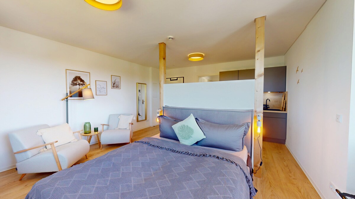 Mirni, mali, samostalni stan sa 1 sobom sa garderobom. Bračni krevet, odvojena kuhinja i kupatilo. Opušteno parkiranje ispred vrata. 15 minuta automobilom do plaže Varnemünde, 5 minuta hoda do supermarketa i autobusa, 10 minuta hoda do stadiona ili sale za plivanje. Smještaj nije isključivo u turističke svrhe zbog nastale obaveze plaćanja naknade za spa centar za hanzeatski grad Rostok