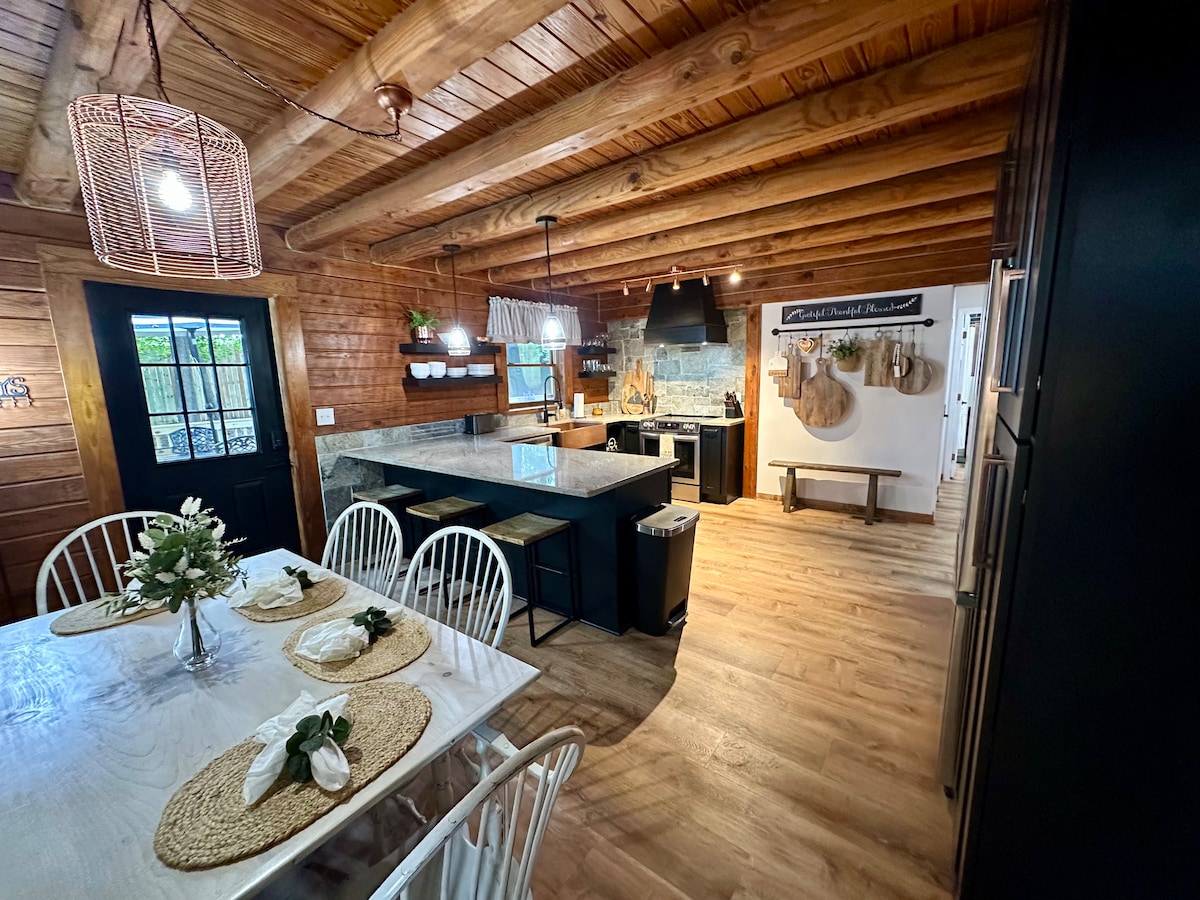 Potpuno nova najmodernija konstrukcija, ova moderna kuća u stilu ambara je i luksuzna i rustična. Nalazi se na 54 hektara prelepe seoske zemlje sa potokom i privatnim stazama. Uživajte u slikovitom pogledu i divljem životu! Viseća ležaljka, roštilj i ognjište. Spiralno stepenište se uzdiže u spavaću sobu u potkrovlju sa novim krevetom za masažu bez gravitacije. Mašina za pranje veša, sušilica, kompletna kuhinja sa mašinom za pranje suđa. Grickalice velike brzine su dostupne.
