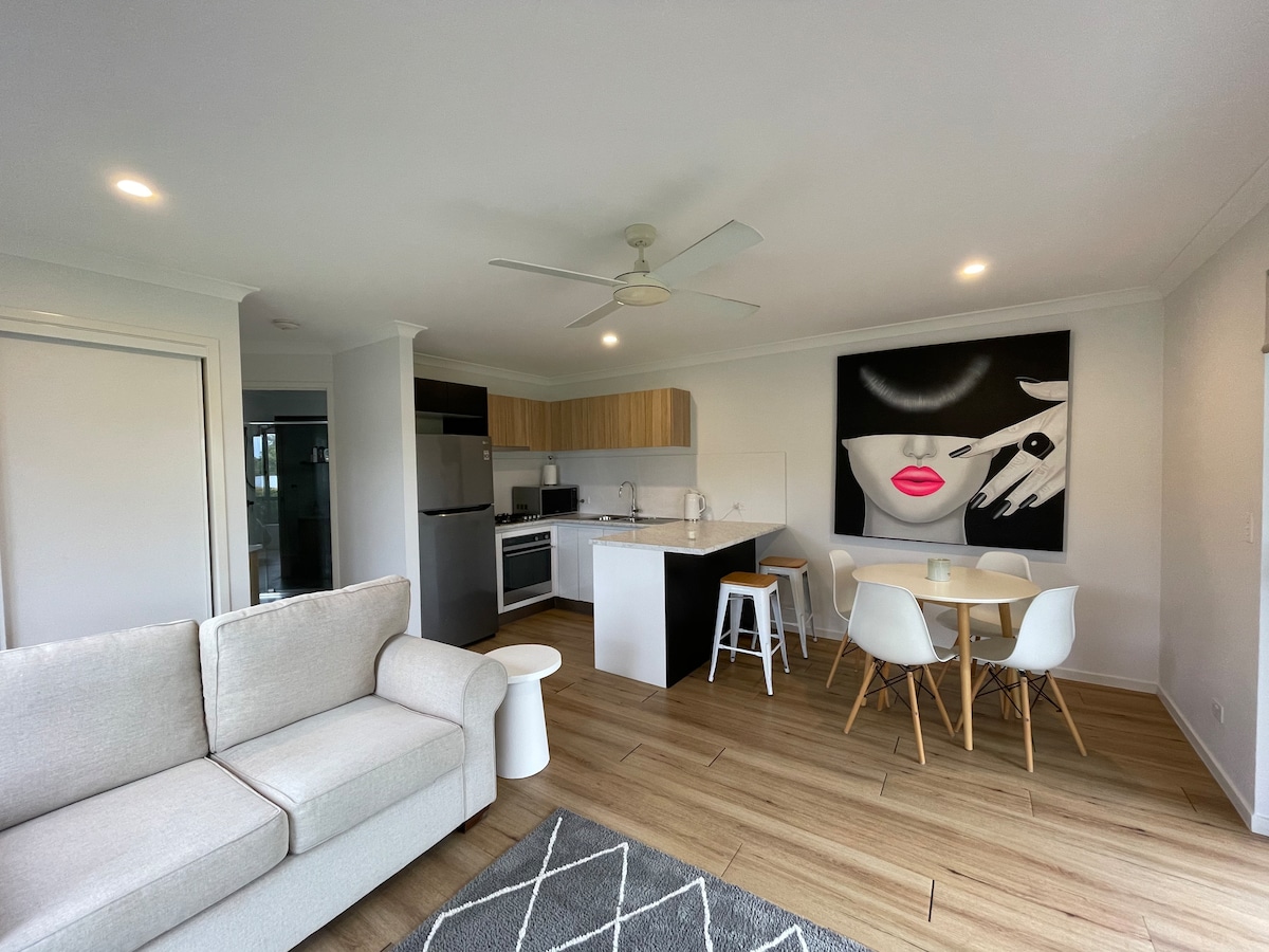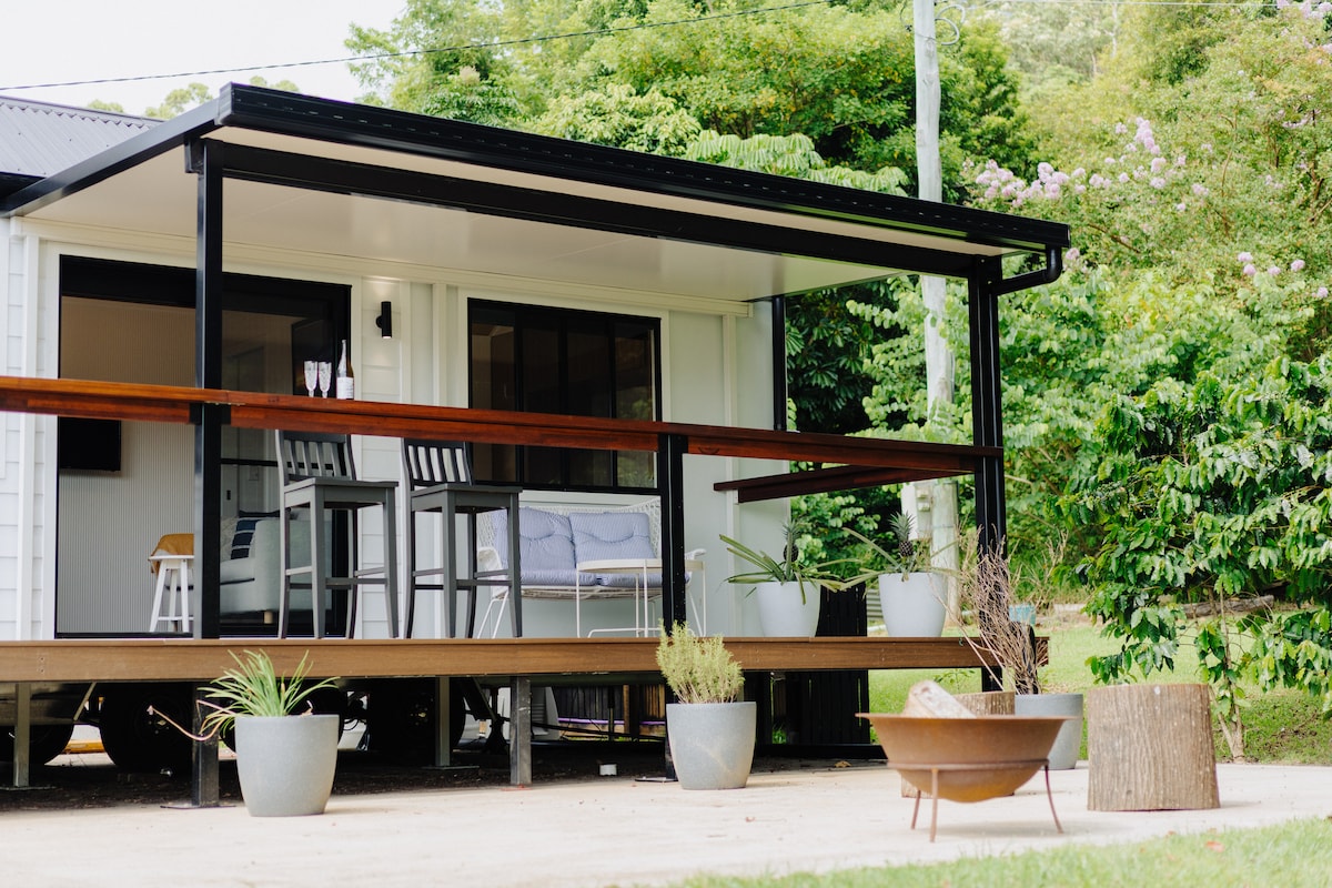 No TV, BYO Wifi. 20' basic container. Single trundle bed. Surrounded by native bush garden, on beautiful Land for Wildlife. It's small. It's unpretentious. There's a ceiling fan when the breeze is off duty. Enjoy the shower deck. Kitchen has sink, fridge, microwave, kettle, toaster and coffee pod thingamajig. You'll need a car: We're 7 min to the shops, 13 minutes to the river, 15 minutes to the surf, 25 min to the hinterland waterfalls but only 0 minutes to tranquility. Host on premises.