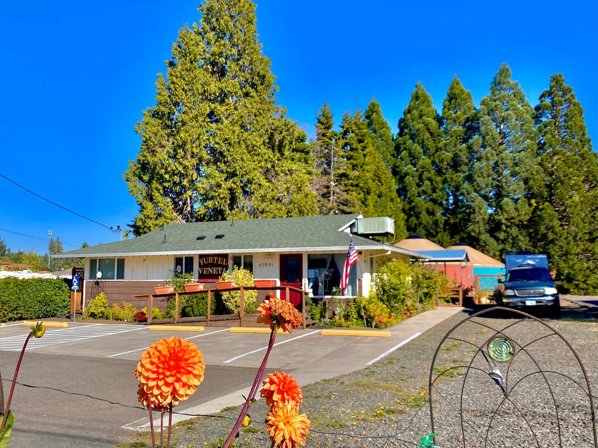 Ovo je jurta srednjevekovne ere. Spoljašnjost je plavkasto tirkizna i prečnika 24'. Moj smeštaj je dobar za odmor, avanturiste i poslovne putnike. Zvezda gleda sa svetlarnika. To je jedna od 3 jurte u Yurtel-Veneta. Njegova sopstvena toplotna pumpa održava unutrašnjost hladnom ili u toploj udobnosti. Kada ste boravili u rundi, drugi smeštaj je samo kvadratan. Uživajte u besplatnom izboru kafe i samoposlužnom doručku. U blizini su odlične vinarije.