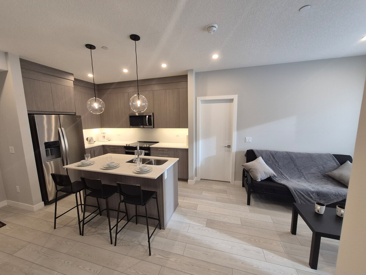 Dobro došli u svoj elegantni urbani odmor u popularnoj zajednici Seton u Kalgariju. Ovaj pažljivo uređeni kondominijum sa 1 spavaćom sobom i sofom na razvlačenje savršen je spoj udobnosti, stila i praktičnosti - idealan za putnike koji putuju sami, parove ili male grupe. Smještena u mirnoj ulici okruženoj drvećem sa modernom atmosferom, ova novoizgrađena jedinica ispunjena je prirodnim svjetlom, modernim namještajem i elegantnim završnim obradama. Od trenutka kada uđete, osjetićete svježu energiju prostora koji je stvoren za lak život.