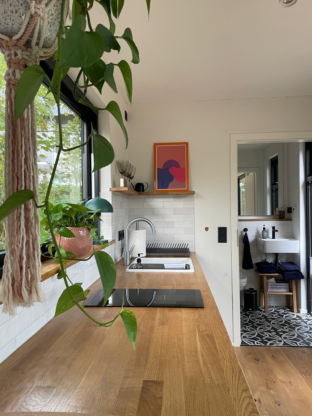 Doživite život u održivom morskom kontejneru razvijenom u severnoj Nemačkoj. Na 23 m2 možete u potpunosti uživati u prekrasnom enterijeru, udobnom namještaju i minimalističkom namještaju. Sve ovo smo lično izabrali sa puno ljubavi! :-) Osim čeličnog omotača, skoro cela zidna konstrukcija se sastoji od obnovljivih sirovina, kao što su drvo, juta i konoplja. Vidljivi glineni malter pruža jedinstven izgled i prijatnu unutrašnju klimu.