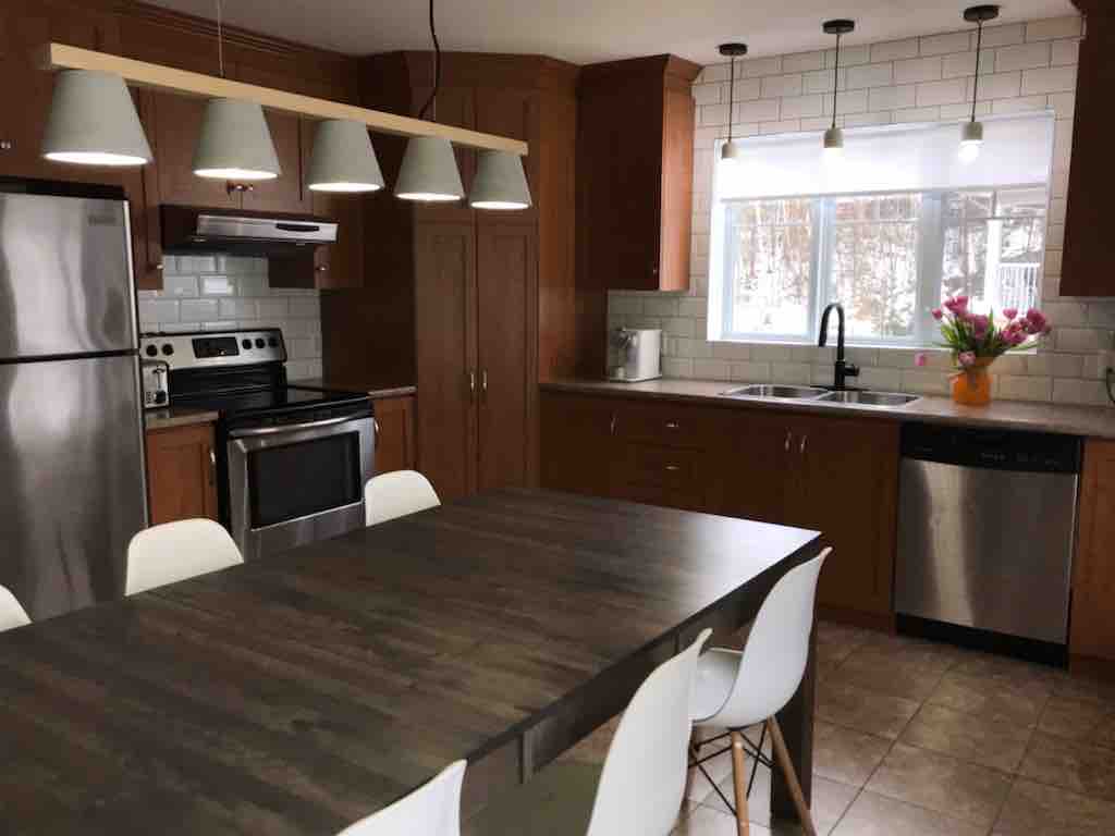 CITQ # 303514 Dobro došli u raj! U alpskom selu skijaške stanice: Mont-Édouard Prizemlje je otvorenog tlocrta, okruženo sa 7 dvorišnih vrata, kupatilom (staklena tuš-kabina), vešernicom i predvorjem. Pod od škriljevca je grijan. Kamin na drva u dnevnoj sobi i TV ekran od 60 inča. Mašina za pranje i sušenje veša, Wi-Fi za rad na daljinu, spoljašnji kamin, drvo uključeno po dolasku, roštilj (samo ljeti). Privatnost je zagarantovana.