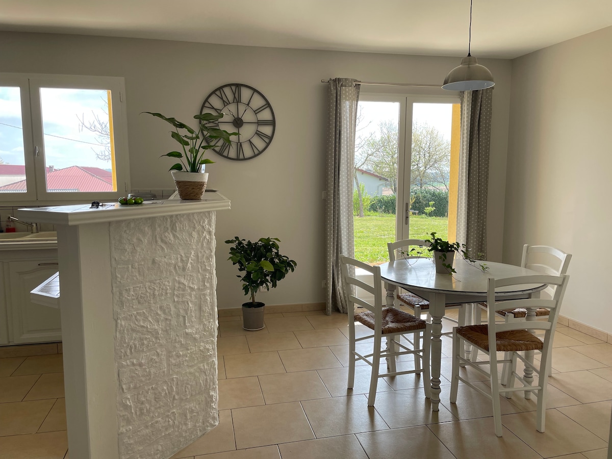 Kuća se nalazi u malom zaseoku, 8 km od grada sa svim sadržajima, u ruralnom okruženju sa pogledom na Pirineje i valovitu prirodu. U vrtu se nalazi veliki bazen sa terasom, trampolina, odbojka, stoni tenis, fudbal, pikado… Kuća ima 4 spavaće sobe i međusprat za 2 dodatna gosta. (2 dodatna gosta samo tokom zime.) Ima nekoliko komšija, pa je idealan za miran odmor.