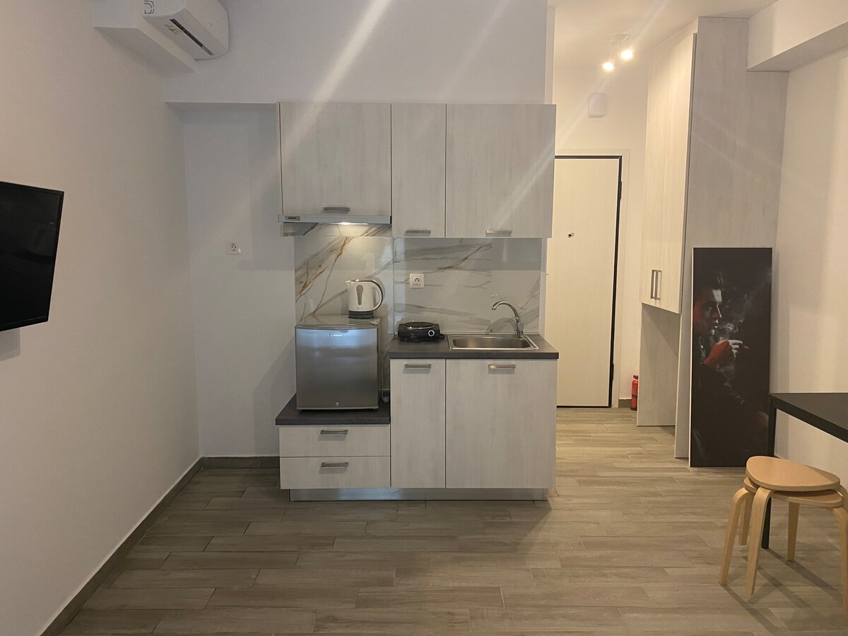Prekrasan elegantan stan u srcu centra pored Narodnog trga (Ag. Vissarionas) i sve znamenitosti. Uključuje sobu sa bračnim krevetom, opremljenu kuhinju i dnevni boravak sa sofom koja može biti bračni krevet. Sve što ovaj grad nudi je u neposrednoj neposrednoj blizini! Pravi dragulj za par, porodicu, putnike koji putuju sami, rukovodioce ili prijatelje koji istražuju grad! Parking je dostupan u blizini objekta uz doplatu.