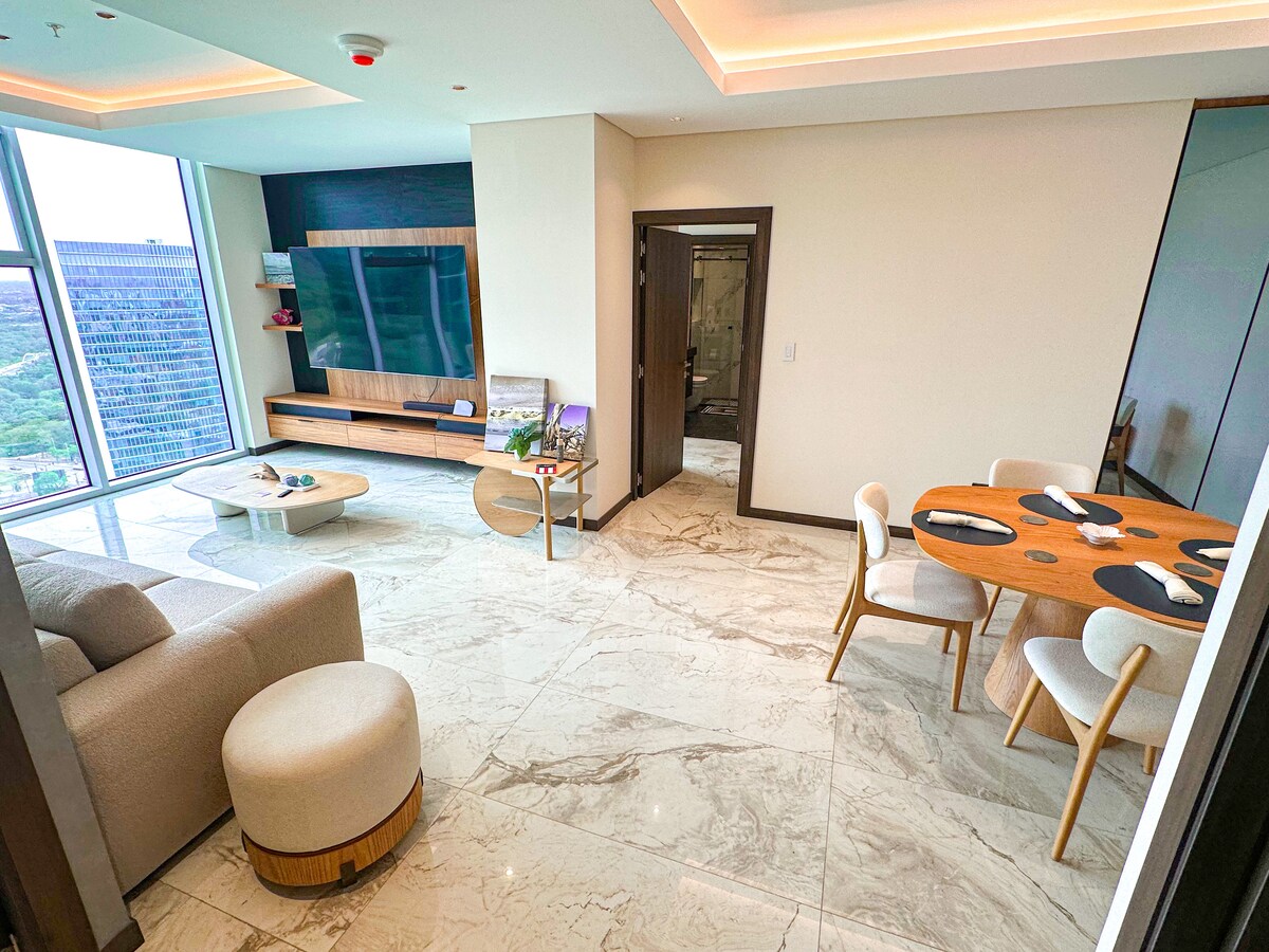 Suite de lujo en Green Tower – Santa Cruz Piso 22. Vive en el edificio más alto y exclusivo de la ciudad, en el piso 22, con vistas panorámicas a Manzana 40, el cordón ecológico y el Urubó. Disfruta de gastronomía de primer nivel en el mismo edificio, en Jardines de Asia, Caudilla, Palosanto y el impresionante Sky bar, además acceso libre a la piscina, sauna, churrasqueras. Cuenta con gimnasio Sport Motion. Un departamento nuevo! amoblado con piezas de alta gama, incluyendo sofá cama grande.