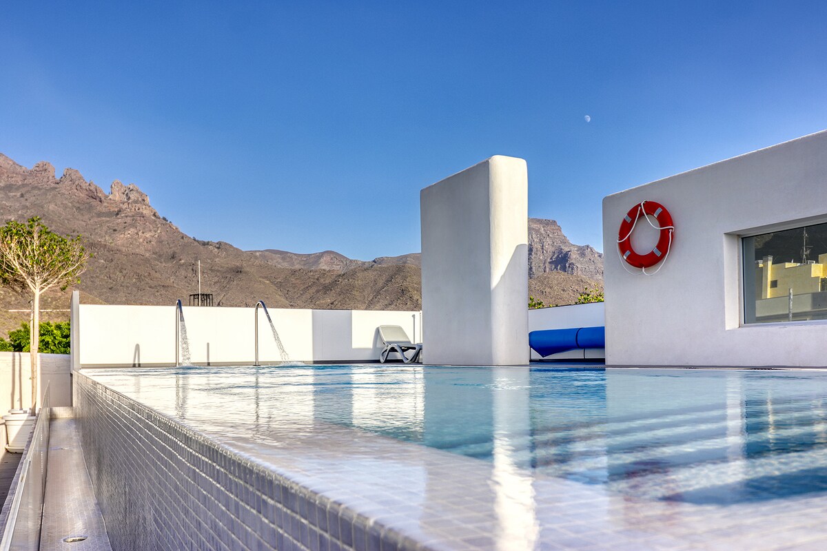Beautiful and comfortable studio in a quiet area, excellently equipped to offer our guests a comfortable and pleasant holiday. It can also be the ideal place to relax or work remotely for a few months. The 45 m² space is excellently distributed to optimize space and is located on the fourth floor of the building (there is an elevator) with views of the Guaza mountain and the swimming pool. It is 5 minutes from the beach and a 10-minute drive from the tourist areas.