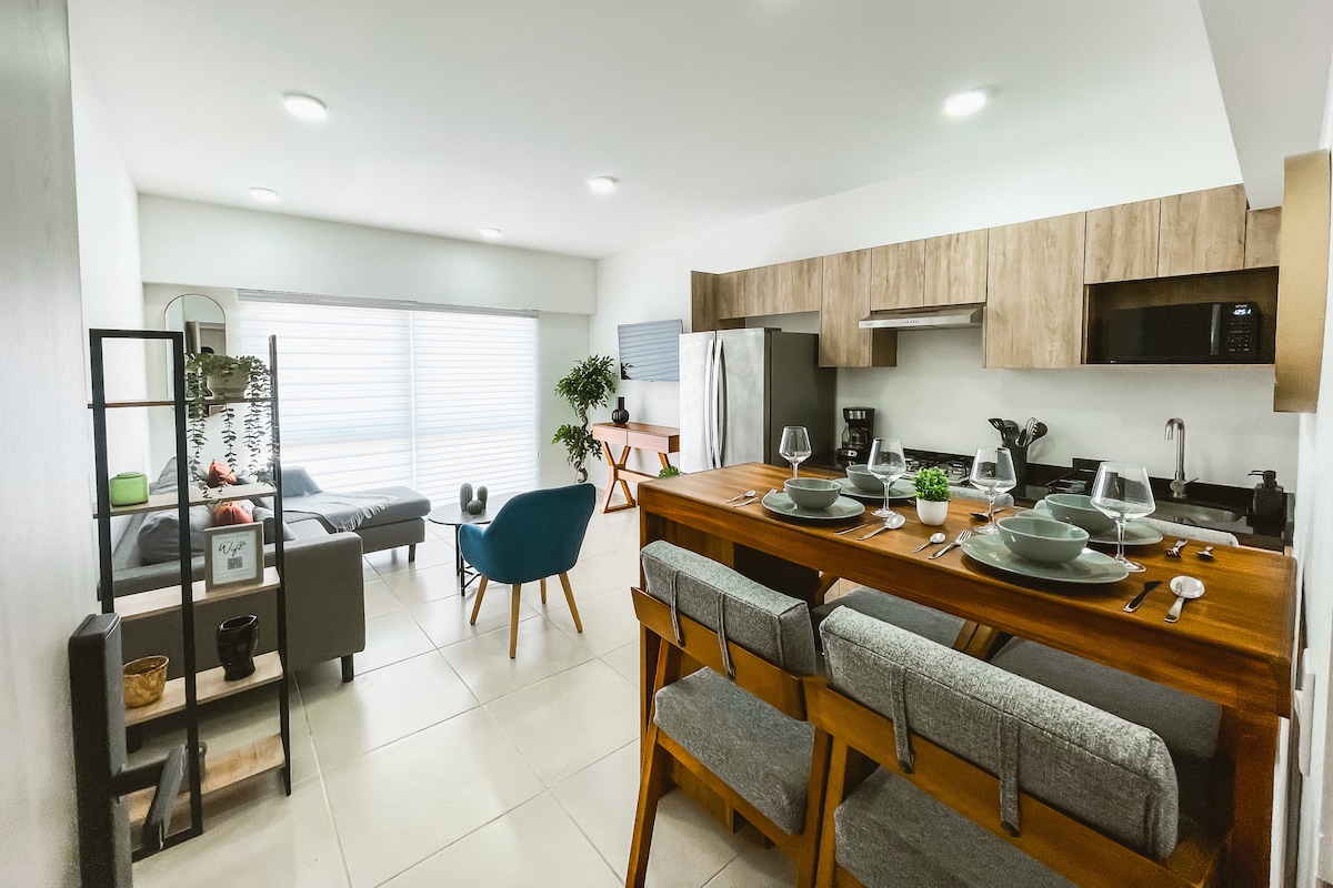 -22. sprat bazena - Prelijepa teretana s pogledom na grad - Potpuno opremljen za duže boravke - Parking je dostupan (uz dodatne troškove) - Usluga čišćenja: jednom sedmično za rezervaciju od +7 noćenja Bilo da putujete poslovno ili u slobodno vrijeme, uživaćete u ovom modernom studiju u potpuno novom luksuznom tornju u četvrti Providensija, u blizini tržnog centra Midtaun Halisko.