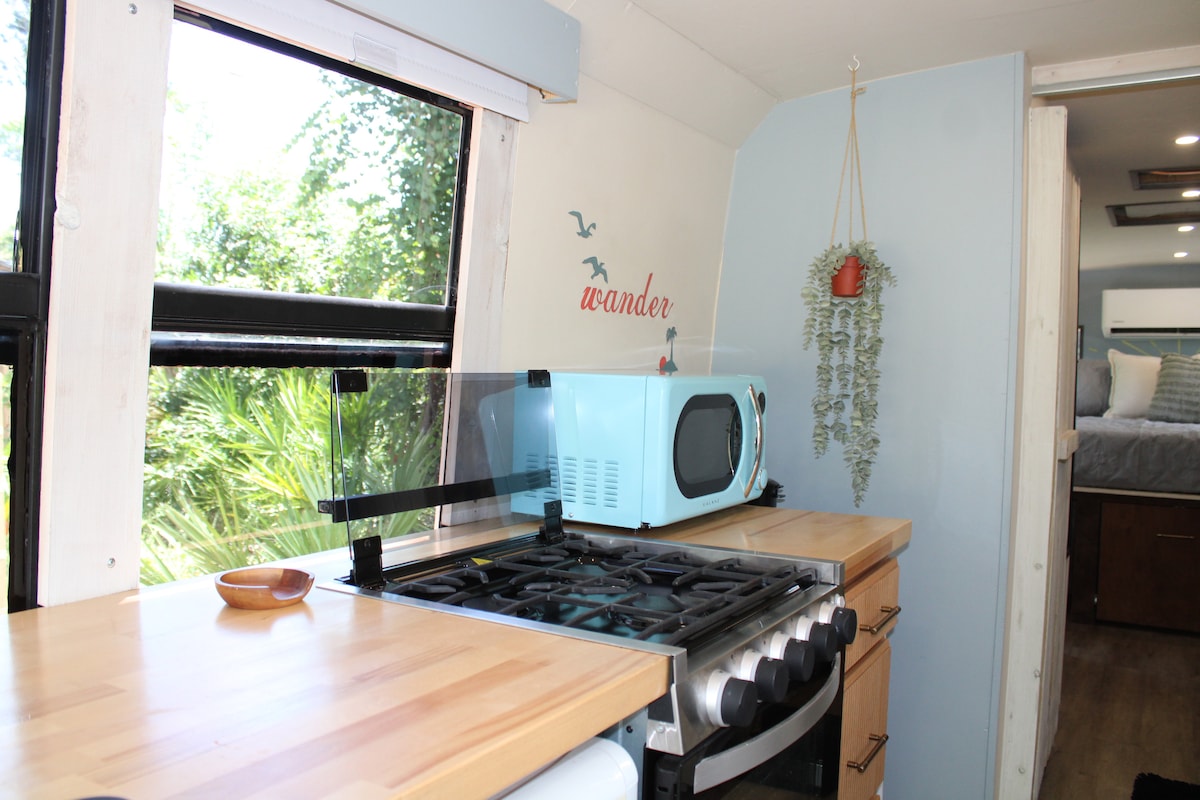 Dobro došli u autobus na plaži! Krenite u jedinstvenu avanturu u kojoj se nostalgija školskih uspomena susreće sa spokojem primorskog šarma Floride. Naš s ljubavlju preuređeni školski autobus iz 2007. godine, koji je nekada bio svjetionik učenja, sada nudi miran odmor smješten među šapatnim palmama i bujnim zelenilom prelijepe obale zaliva Floride! Ali ne zaustavljajte se na tome... samo nekoliko minuta do najboljih plaža koje Zaliv ima da ponudi! Neka bude nezaboravno, neka bude Autobus za ⛱️ plažu 🏝