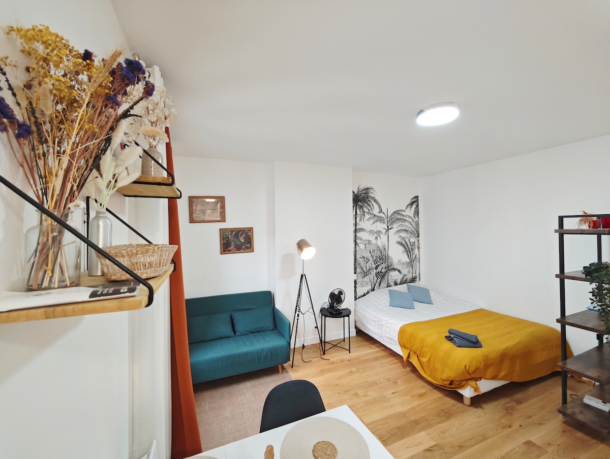 Velika garsonjera od 30 m2 nalazi se u prizemlju u mirnom dvorištu - bašti. Obuhvata spavaću sobu, dnevnu sobu, kuhinju opremljenu i tuš kabinu sa WC-om i umivaonikom. Garsonjera je idealna za posetu Parizu. 150 m podzemne železnice St. Mandé poslužuje se pored linije 1 Paris Center(Notre Dame:15 min; Luvr: 20 min; Champs Elysées:25 min). Sve vrste prodavnica u blizini. Aerodromi Orli ili CDG na 30 minuta taksijem. Železnička stanica Gar de Lion oko 10 minuta