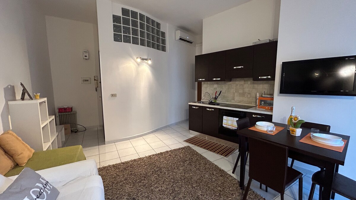Moderan i udoban stan renoviran 2024. godine. Drugi sprat bez lifta. Dnevni boravak sa namještenom kuhinjom i mašinom za pranje sudova, Wi-Fi mrežom, dvokrevetnom spavaćom sobom (sa klima-uređajem), drugom spavaćom sobom sa dva kreveta na sprat, kupatilom sa tušem i mašinom za pranje veša, dva mala balkona. Lokacija zgrade je strateška, u blizini prodavnica i supermarketa, stanica prevoza i javnih kancelarija: 15 minuta hoda od Pjaca del Popolo i 10 minuta od tržnog centra Latina Fiori (sa apotekama i restoranima).