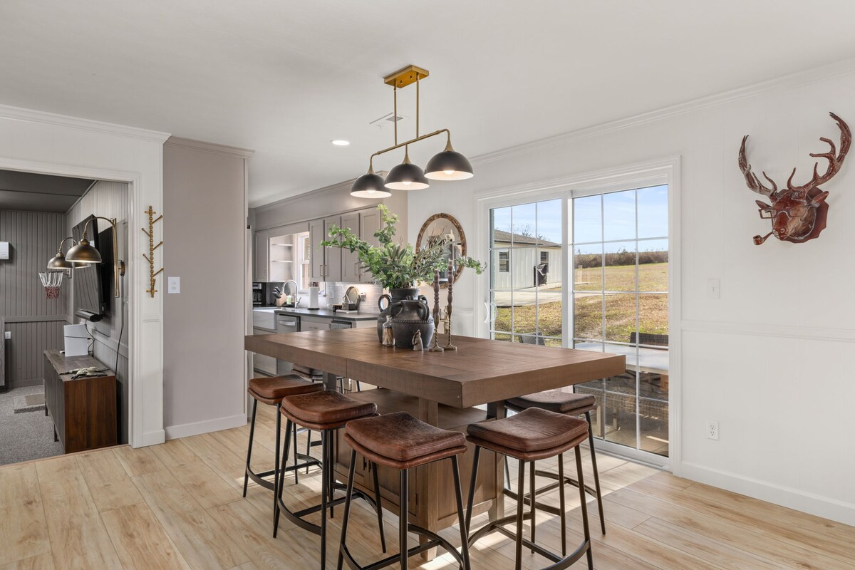 Dobro došli u svoj smještaj uz jezero Vilson, samo tri kilometra od golf terena RTJ. Ovaj renovirani dom uz obalu može da primi do 16 gostiju sa 10 kreveta i nudi ravno dvorište, privatno pristanište, ognjište, teren za golf i dovoljno parking mesta za više vozila i prikolica sa pogodnom rampom za čamce. Unutra uživajte u igraonici sa stonim tenisom, stonim fudbalom i vazdušnim hokejom, kao i u televizorima i Wi-Fi mreži u svakoj sobi. Prikladno za kućne ljubimce i savršeno za porodice, golf-putovanja, ribolov i grupna putovanja.