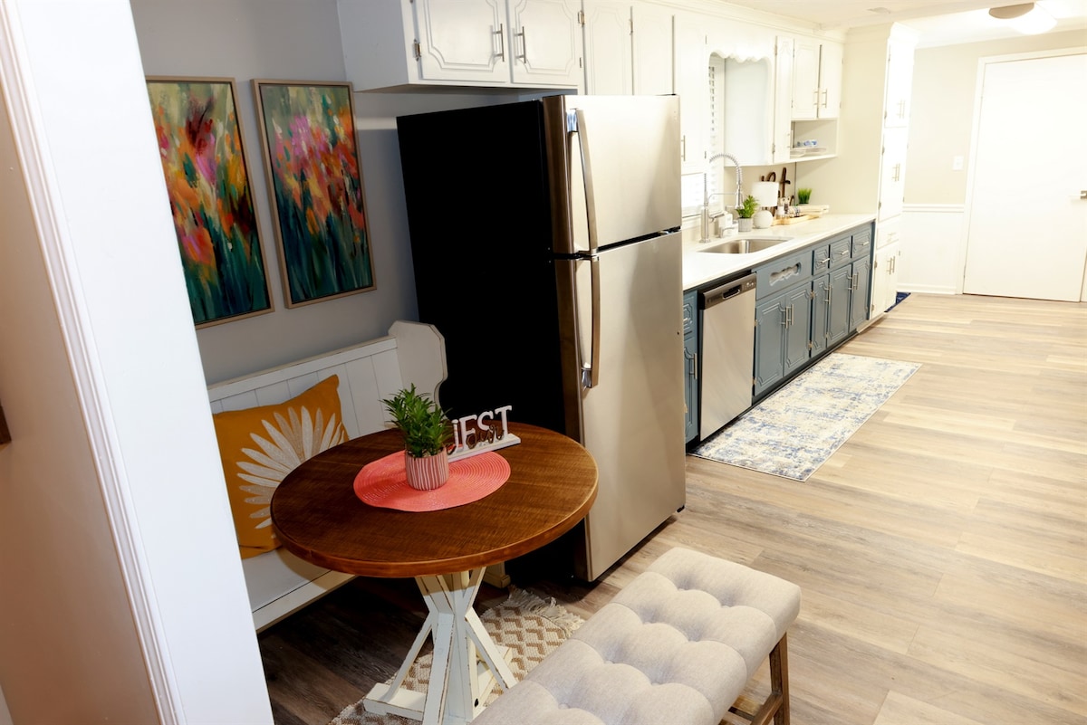 Opustite se u ovom mirnom i elegantnom prostoru. Dođite i uživajte u prelepim zalascima sunca na privatnoj terasi dok se opuštate u hidromasažnoj kadi ili sedite oko ognjišta. Uživajte u ovom udobnom utočištu samo 1 milju od terena za golf RTJ i 3 milje do najbliže rampe za brodove. Ovaj smještaj nudi kuhinju sa kafićem i frižiderom za vino, unutrašnji/spoljašnji TV, prostranu tuš-kabinu i kadu za noge sa kandžama. Takođe nudimo povezivanje brodova i kampera. Uživajte u raznovrsnoj hrani i zabavi udaljenom 10-15 minuta.