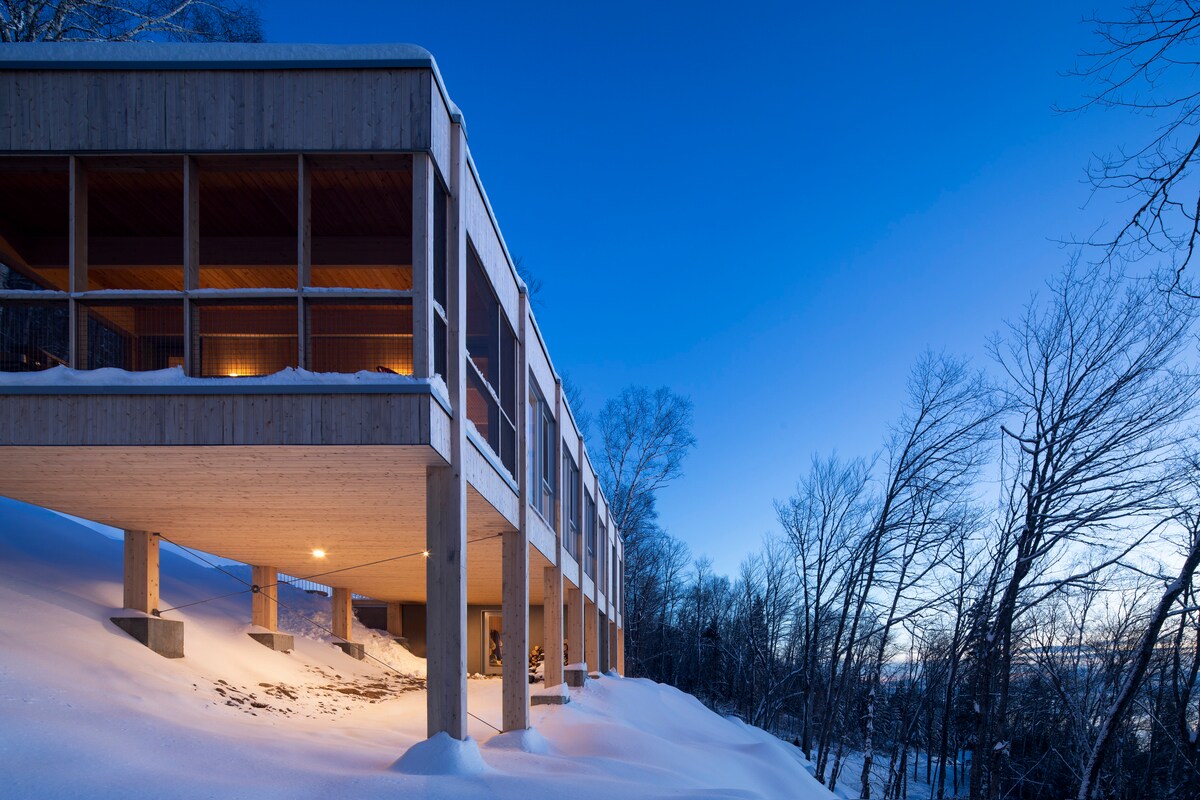Iskusite 7 godina izvrsnosti Super domaćina u ovom modernom utočištu u Šarlvoa. Smješteno na planini, naše Zen utočište ima prozore u nivou šume i brzi optički internet. Samo 10 m od vrha Le Massif-a, 15 m od bistroa i galerija Baie-St-Paul i 1 sat od grada Kvebeka. Uživajte u „sjevernjačkoj udobnosti” u prostranom dnevnom boravku dizajniranom za kvalitetno vrijeme. Idealno za miran odmor; bez zabava i događaja. Čeka vas utočište na planini za opuštanje i istraživanje. CITQ #298792