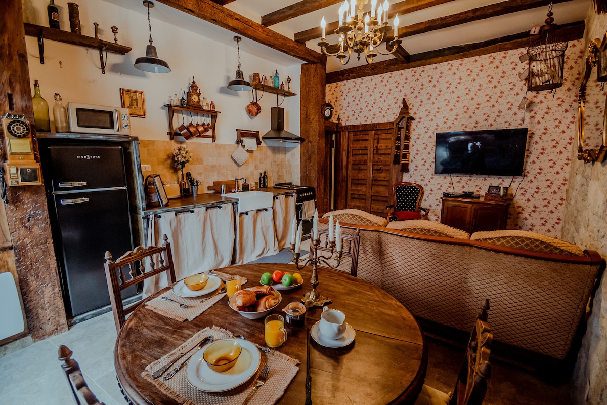 Velika restaurirana kuća. 160m². 4 prostrane spavaće sobe. 3 kreveta za 2 osobe. 2 kreveta 1 osoba. Dječji krevetić. 2 kupatila. 1 kupatilo. 1 tuš. 1 WC šolja. Potpuno opremljena zasebna kuhinja. 1 velika dnevna soba. Mezanin sa prostorom za igre, bibliotekom i 1 spavaćom sobom. Podno grijanje. Izloženost jugu. Terasa. Baštenski nameštaj. Savršeno za porodice ili romantične boravke za parove ili posjete boravcima. Sadržaji za bebe, igre za malu djecu, knjige