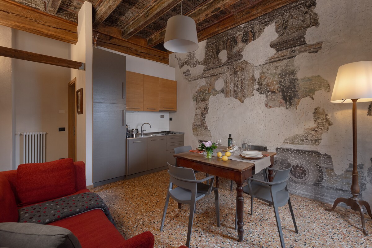 Lokacija fascinira kontrastom između modernog namještaja i izloženih kamenih zidova. Nalazi se u najčarobnijem dijelu istorijskog centra Verone, ispred Sant' Anastazije, jedne od najlepših crkava u Italiji i nekoliko koraka od sugestivnog rimskog Kamenog mosta (200 m). U blizini se nalaze Duomo (200 m), Rimsko pozorište (400 m), Julijina kuća (400 m), Pjaca Dante (300 m), Pjaca dela Erbe (350 m) i spomenik izuzetnosti, Arena (850 m).