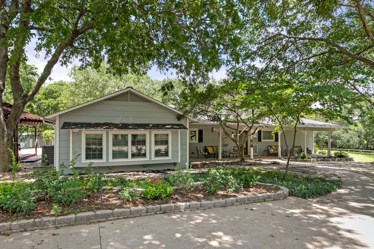 AirBnB “Guest Favorite!” One block from one of the most fabulous Historic downtowns in Texas! Sweet special place for your special getaway! You will love this charming cottage for so many reasons- location of course but then you will love the details that make this place so comfy-2 king beds, 1 queen,1 twin +sleeper sofa, comfortable living w 55" smart tv wifi, well equipped kitchen, spacious dining area plus cozy kitchen nook, bonus room, laundry & FABULOUS front & back stone patios & Firepit!