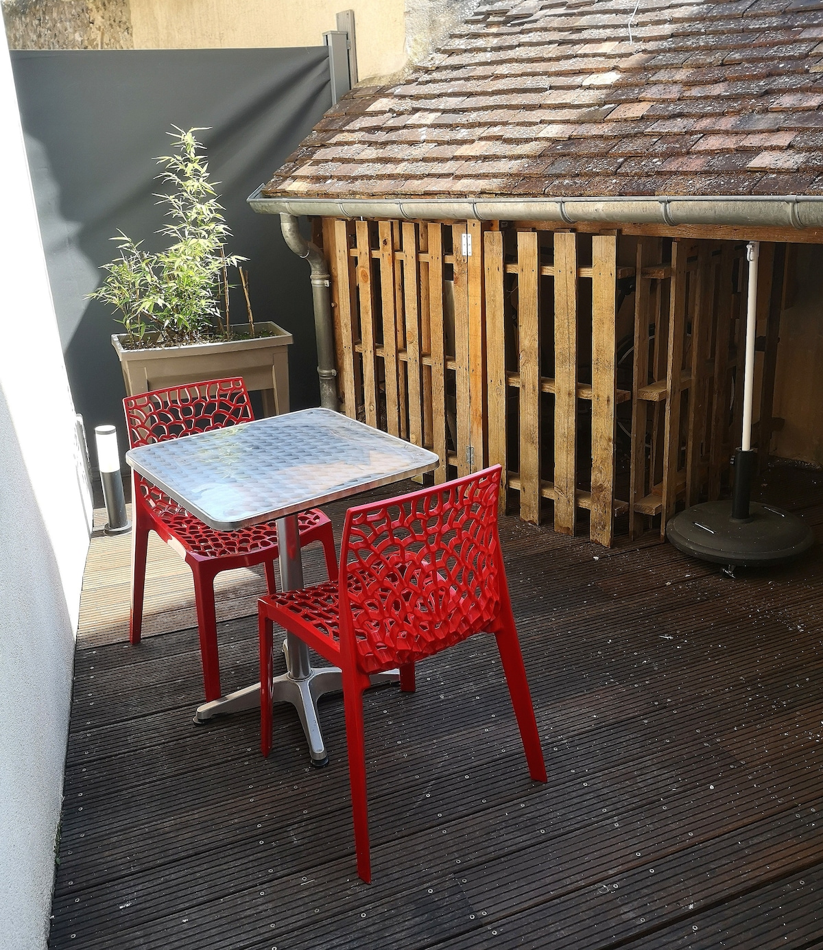 Vrlo udoban stan u prizemlju sa stambenim objektom sa terasom i nezavisnim ulazom. Sastoji se od udobne trpezarije i potpuno opremljenog kuhinjskog dnevnog boravka. Potrebno je posuđe i kućanski aparati TV i društvene igre su dostupne. Dve odvojene sobe sa nezavisnim kupatilima su opremljene peškirima, fenom za kosu. Parking. Nalazi se na 2 minuta hoda od velikog parka sa jezerima i 3,5 km od centra Čartresa i obližnjeg A11, N154.